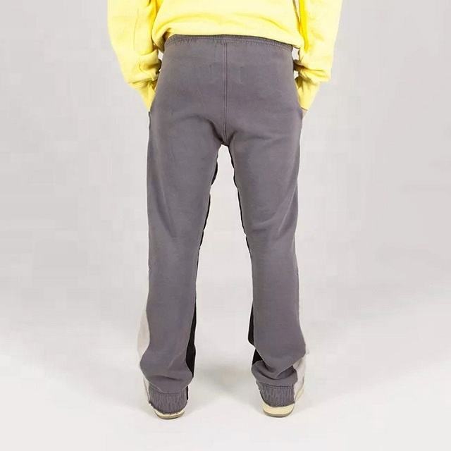กางเกงวอร์มทรงขาบานสไตล์วินเทจสำหรับผู้ชาย เอวยางยืด ดีไซน์แบบต่อผ้า ผลิตจากผ้าฝ้าย 100% เป็นมิตรต่อสิ่งแวดล้อม