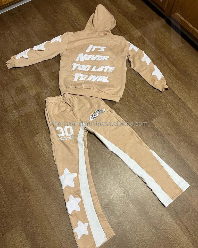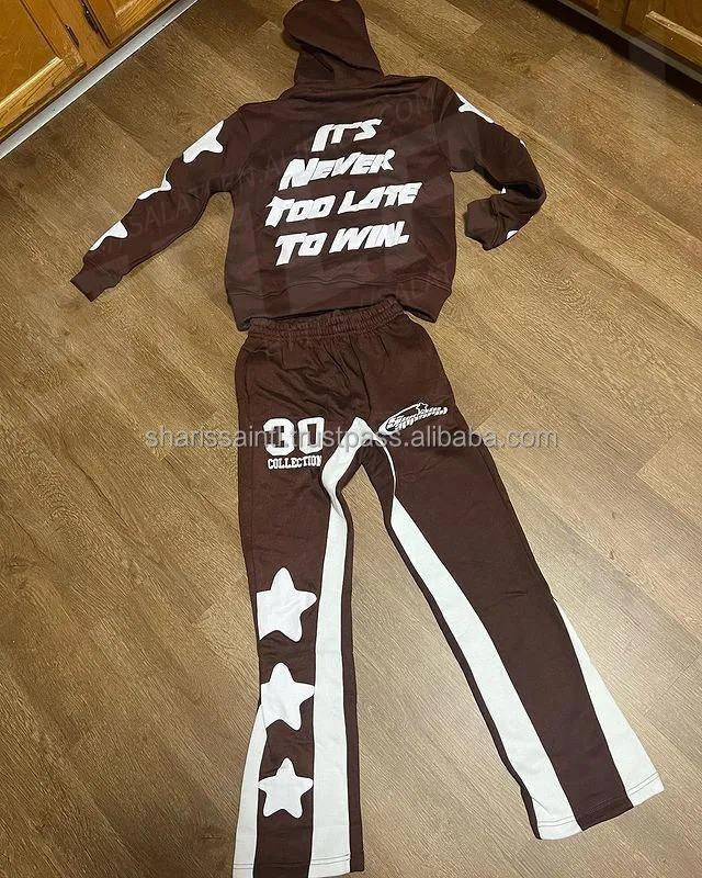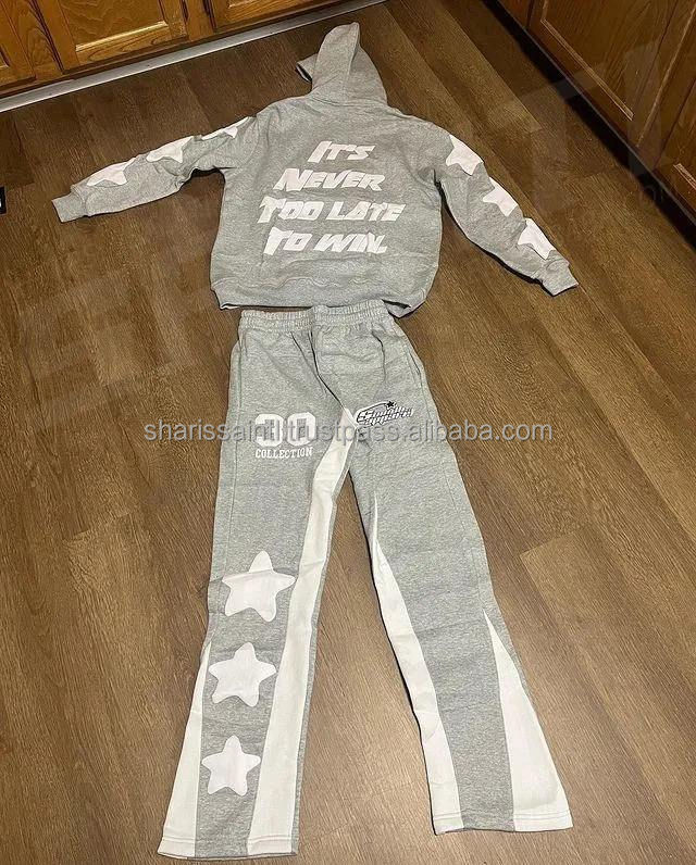ชุดสเวตเตอร์และเสื้อมีฮู้ดสำหรับผู้ชายกางเกงวอร์มผ้าคอตตอนผ้าฟลีซใส่ได้ทั้งชายและหญิงพิมพ์ลายพัฟ