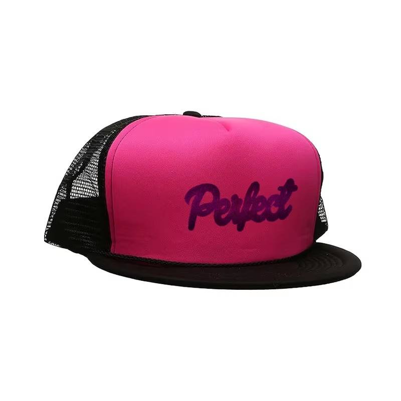 หมวกเบสบอลลายตาข่ายระดับพรีเมี่ยม5แผงหมวกทรัคเกอร์แบบสั่งทำ3D แบนปักโลโก้คุณภาพสูง