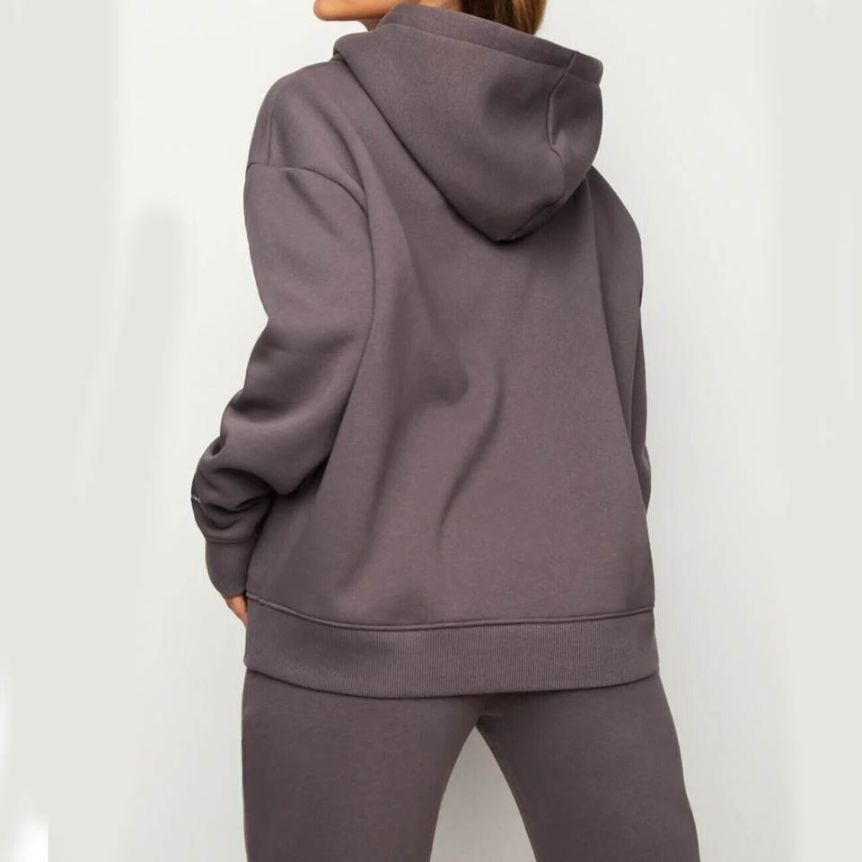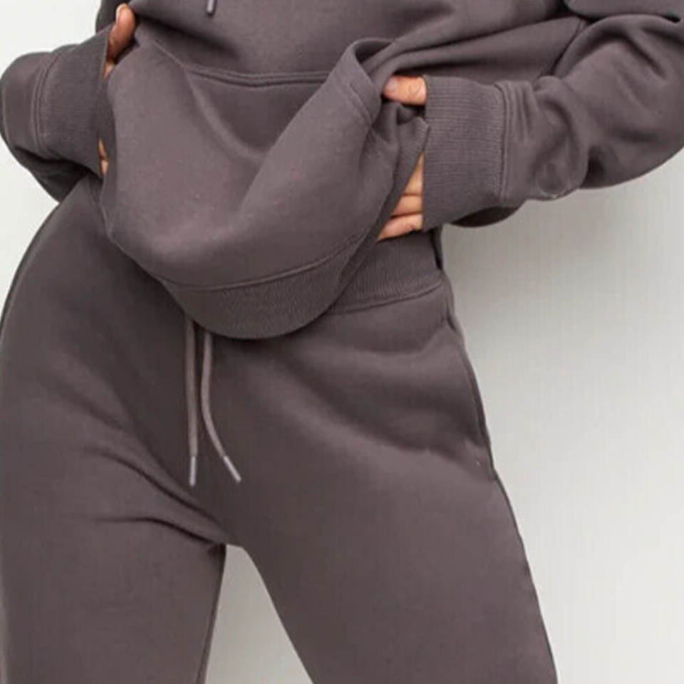 ชุดวอร์มขนแกะแบบกำหนดเองสำหรับผู้หญิง ชุดฤดูหนาวและฤดูใบไม้ร่วง 2 ชิ้น ชุดลำลองมีฮู้ด ชุดวอร์ม 2 ชิ้น