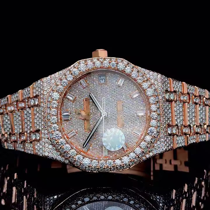 นาฬิกาข้อมือเพชรโมอิสซาไนต์ควอตซ์แบบกำหนดเองสำหรับผู้ชาย VVS สไตล์ฮิปฮอปแร็ปเปอร์สุดหรู