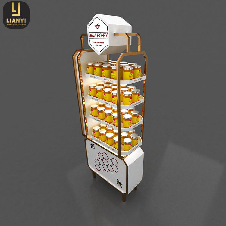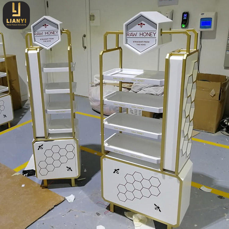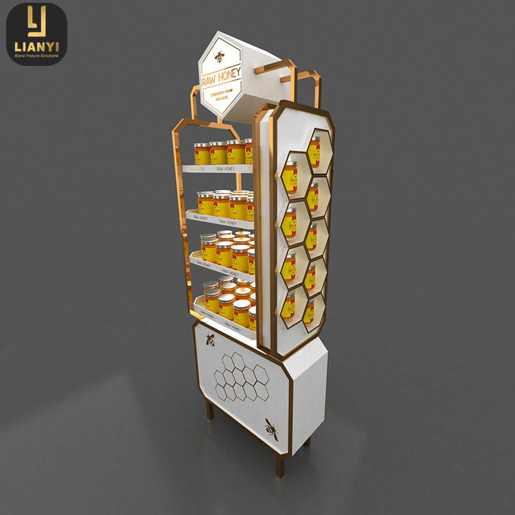 Custom Floor Honey Display Stand Shelf Honey Shop Decor Supermarket Store Snacks Display Racks