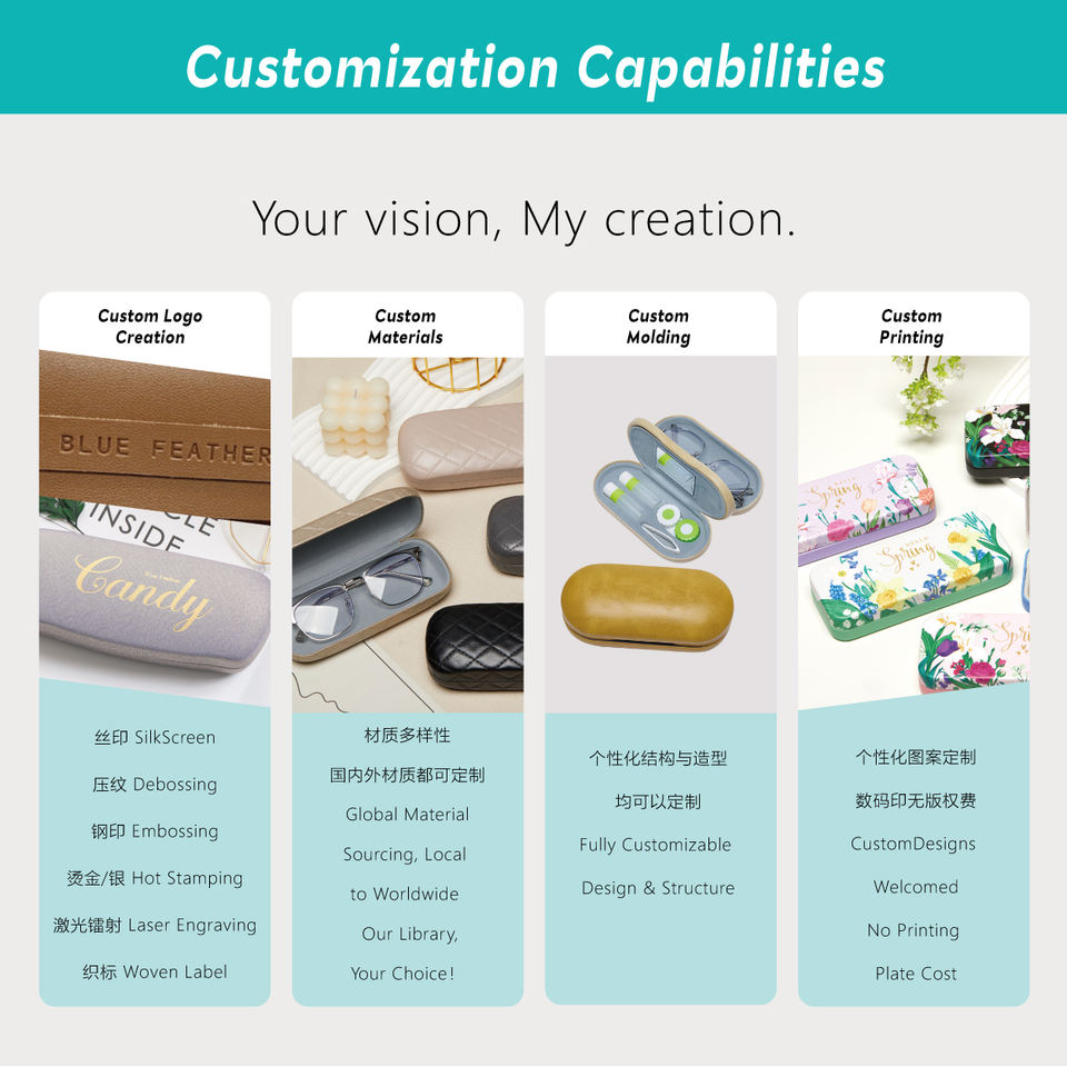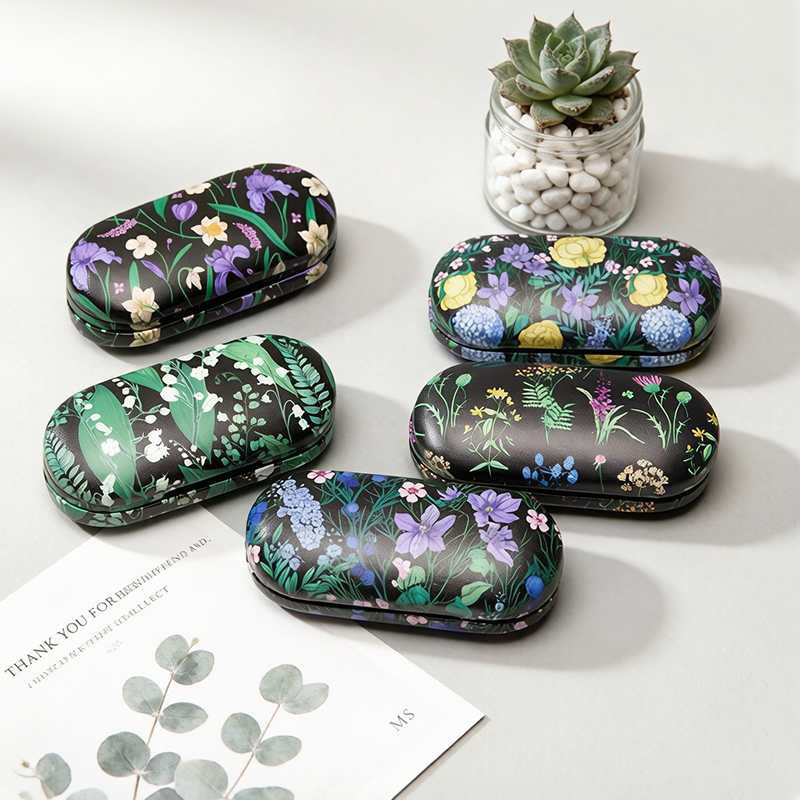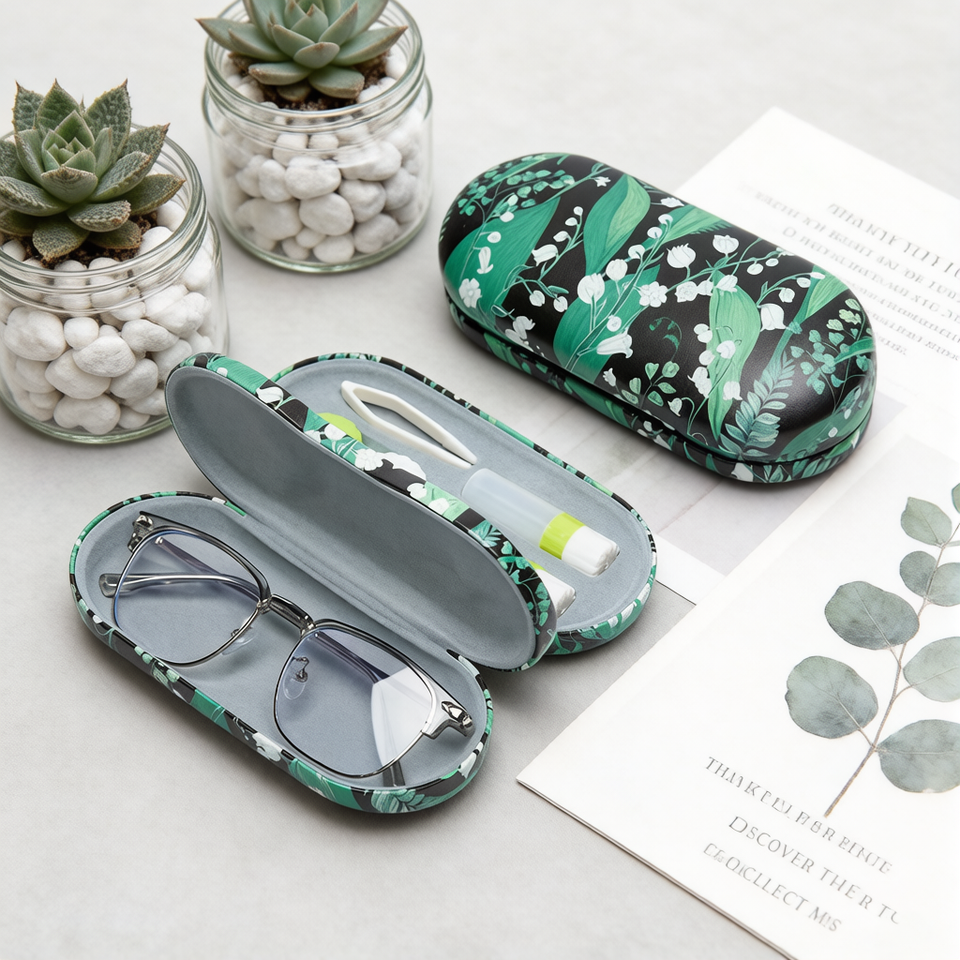 กล่องใส่แว่นตาแบบสองชั้นพิมพ์ลายดอกไม้ดิจิทัล 2-in-1 กล่องใส่คอนแทคเลนส์แบบแข็งพิมพ์โลโก้ได้