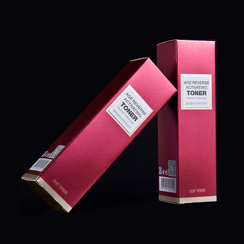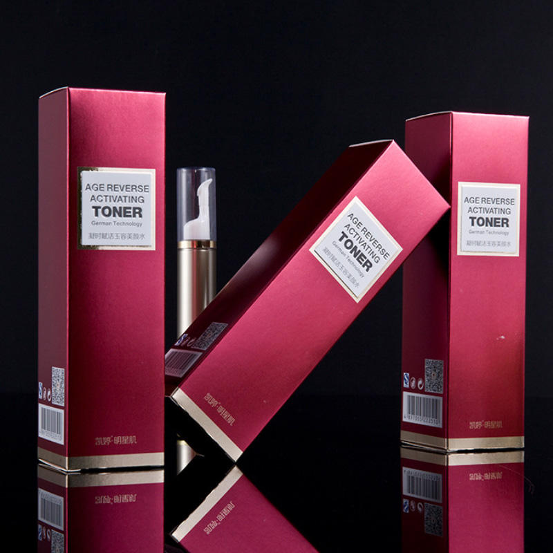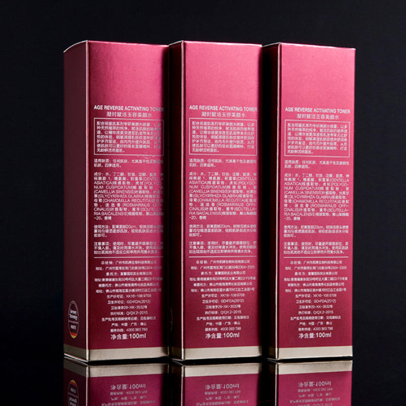 กล่องกระดาษแข็งพับได้แบบกำหนดเอง กล่องบรรจุภัณฑ์โทนเนอร์บำรุงผิว ปั๊มฟอยล์ทอง กล่องกระดาษทรงสี่เหลี่ยมคุณภาพสูง 375 กรัม