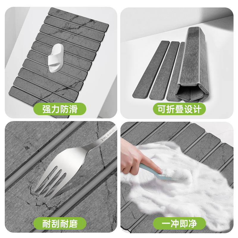 แผ่นรองพื้นไดอะตอมไมต์แบบพับได้ รูปทรงสี่เหลี่ยมผืนผ้า สีขาวลายหินอ่อน สไตล์มินิมอล ซึมซับน้ำได้ดี แห้งเร็ว สำหรับใช้ในบ้าน ห้องน้ำ ห้องครัว ห้องนั่งเล่น