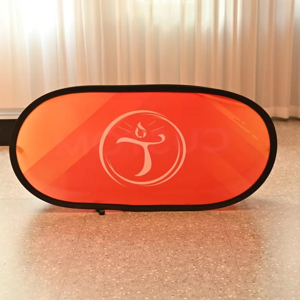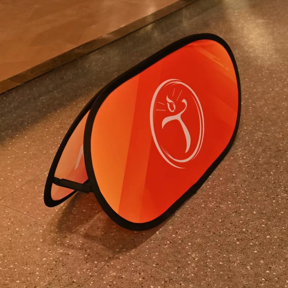 ธงและป้ายโฆษณาแบบพับได้แนวนอนสำหรับงานแสดงสินค้า นิทรรศการกลางแจ้ง และงานกีฬา