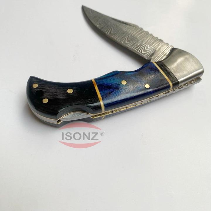 มีดพับแบบกําหนดเองแฮนด์เมดดามัสกัสพร้อมฝักหนัง