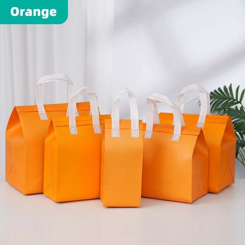 บรรจุภัณฑ์ส่งอาหารแบบกำหนดเอง กาแฟ อลูมิเนียมฟอยล์กันความร้อนแบบใช้ครั้งเดียว ฉลากติดเอง พกพาสะดวก สีส้ม