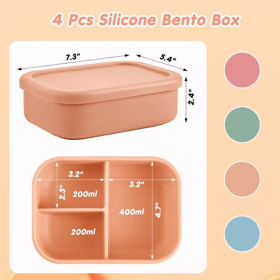 กล่องใส่อาหารเด็กแบบซิลิโคนเกรดอาหาร ปลอดสาร BPA ป้องกันการรั่วซึม ทนความร้อน ใช้สำหรับใส่สลัด อาหารกลางวัน กล่องเบนโตะ ปลอดภัย