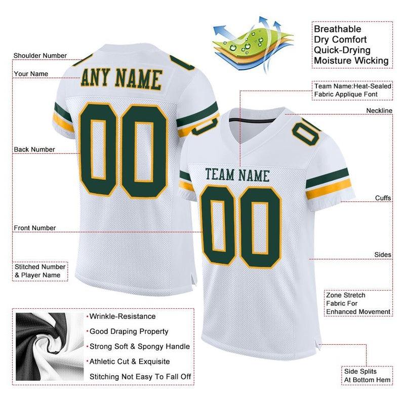 เสื้อฟุตบอลแบบกำหนดเอง ชุดฟุตบอลคุณภาพพรีเมียม | ผู้ผลิต EM&ODM เสื้อฟุตบอลตาข่ายสีขาวเขียวทองแบบกำหนดเอง