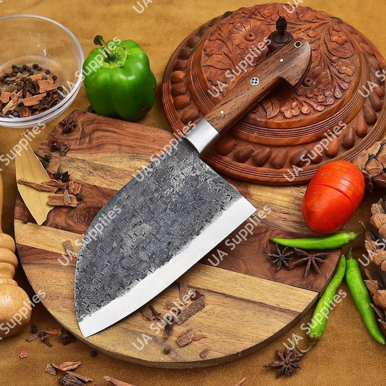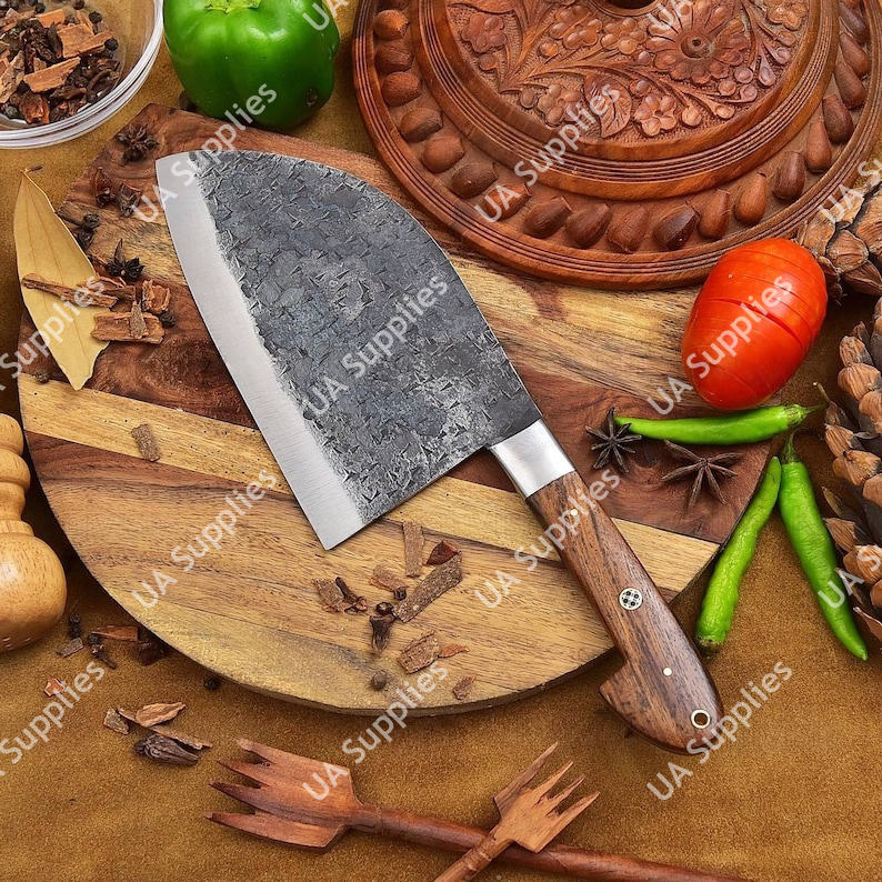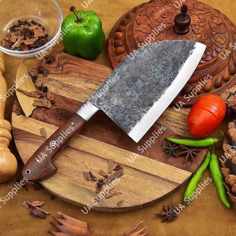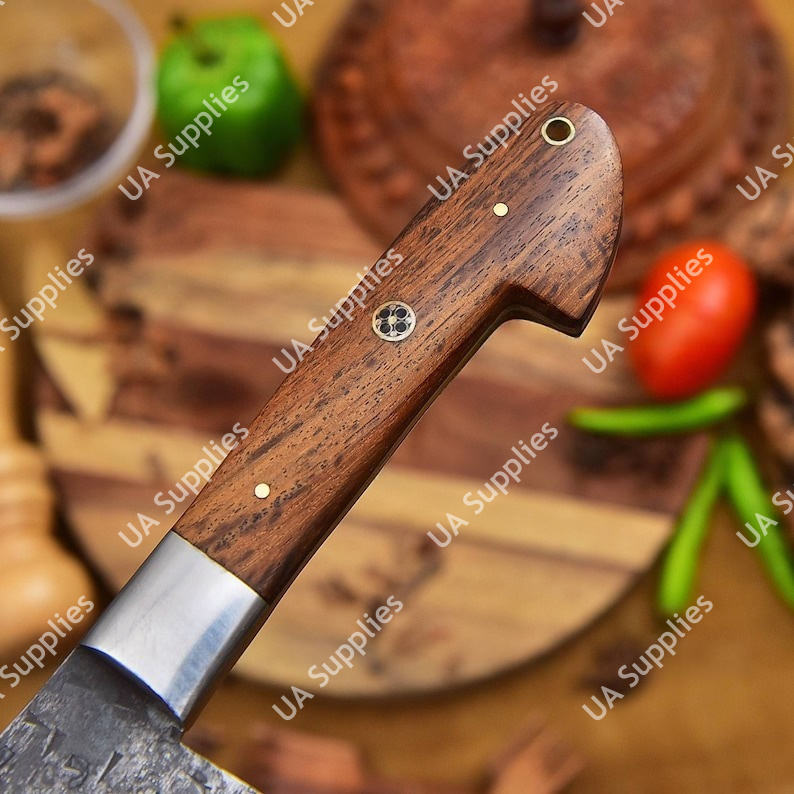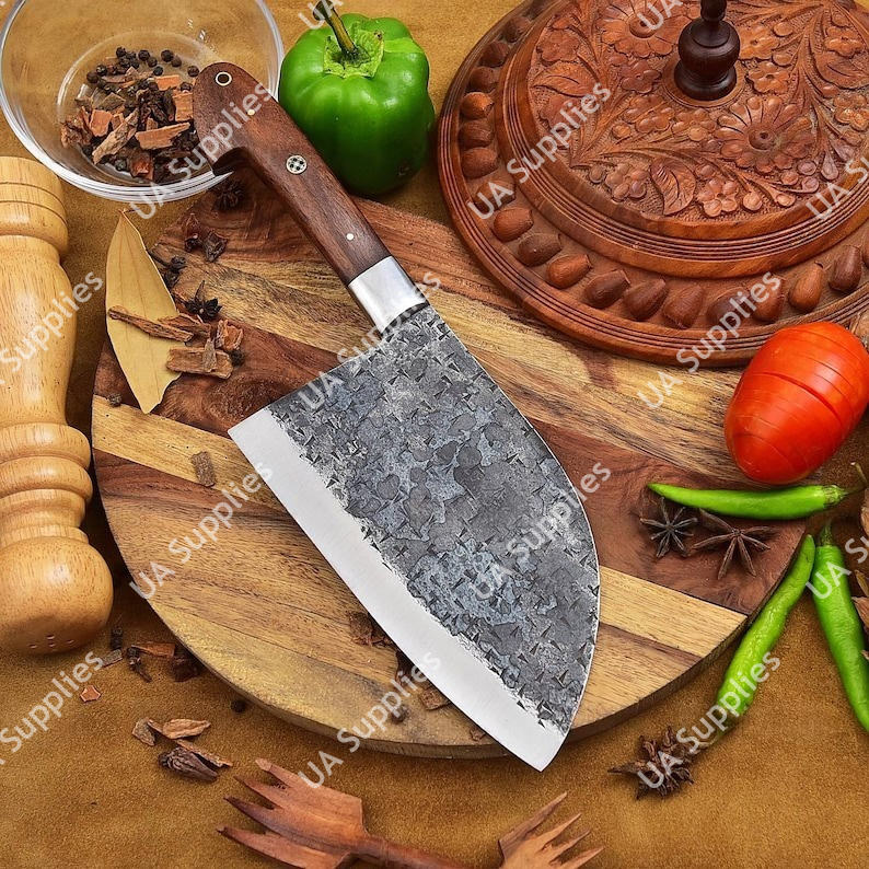 มีดเชฟเซอร์เบียเหล็กกล้าไร้สนิมตีขึ้นรูปพิเศษ ด้ามไม้พะยูง ออกแบบตามหลักสรีรศาสตร์ ใช้งานได้ทั้งสองมือ สำหรับสับเนื้อแบบหนัก รุ่นวินเทจ