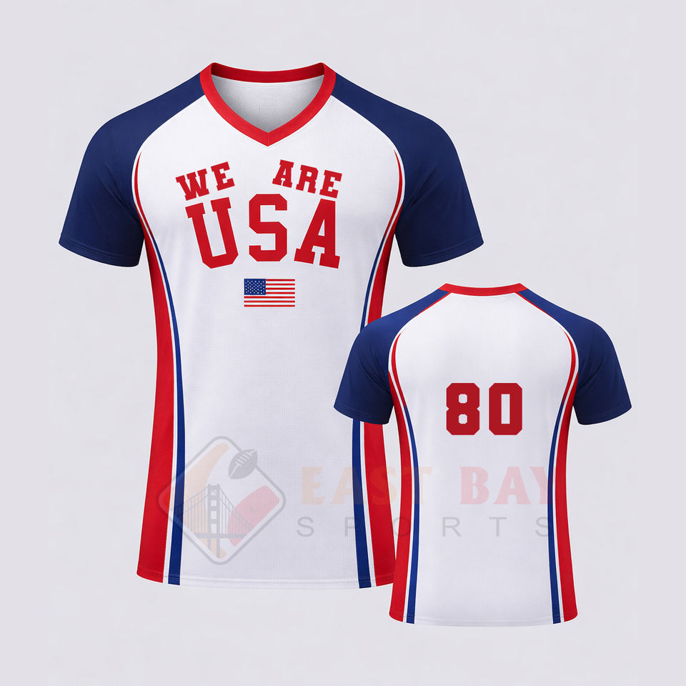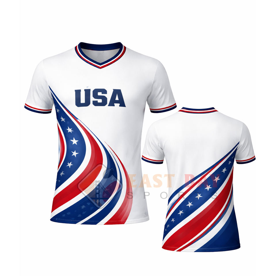 เสื้อฟุตบอลทีมชาติฝรั่งเศสแบบกำหนดเอง สีขาว น้ำเงิน แดง เสื้อฟุตบอลผู้ชาย ระบายอากาศได้ดี ชุดกีฬา