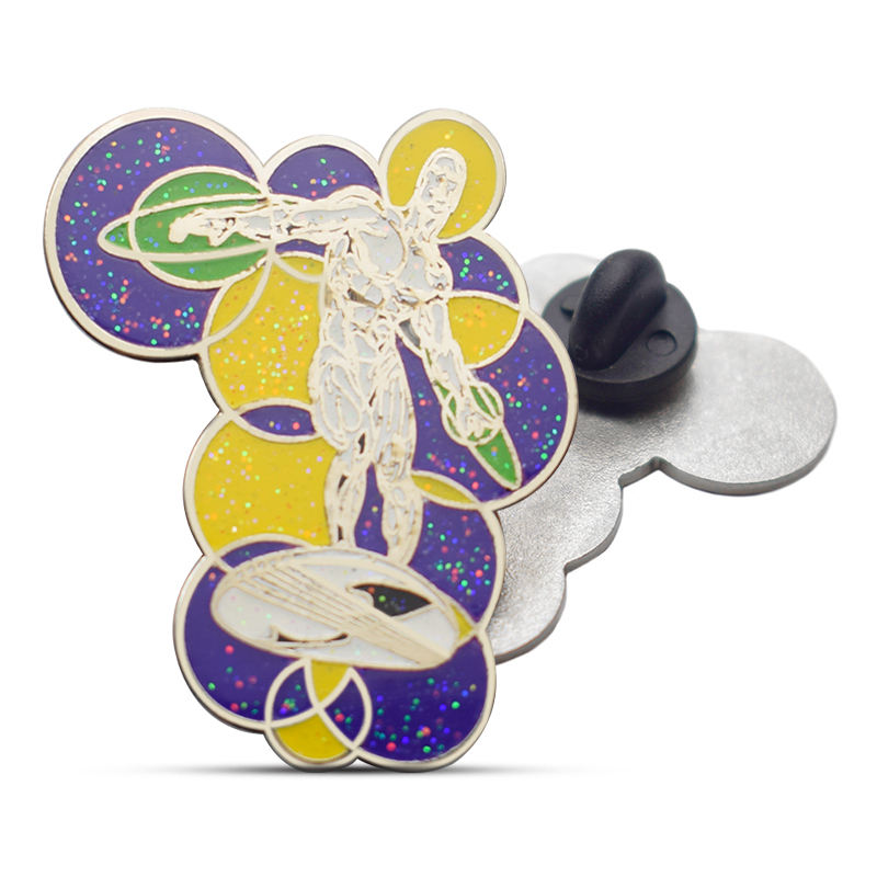 หมุดปักโลหะเคลือบสีเงินแบบนิ่มสีเหลืองลายตัวการ์ตูนแนวสปอร์ตออกแบบได้ตามต้องการ