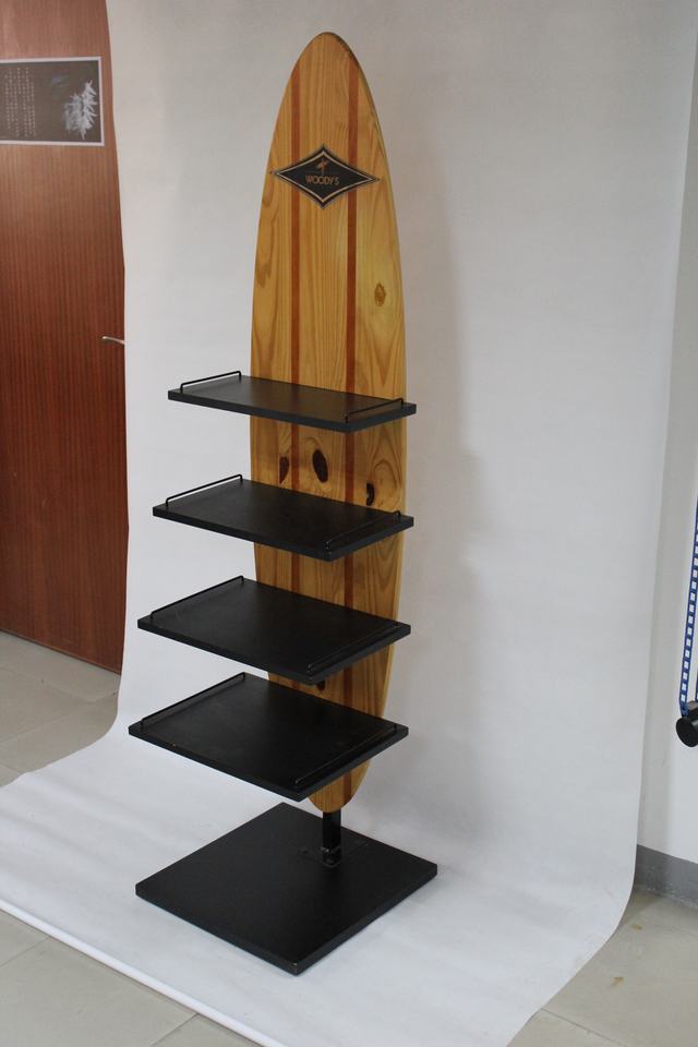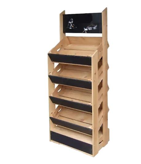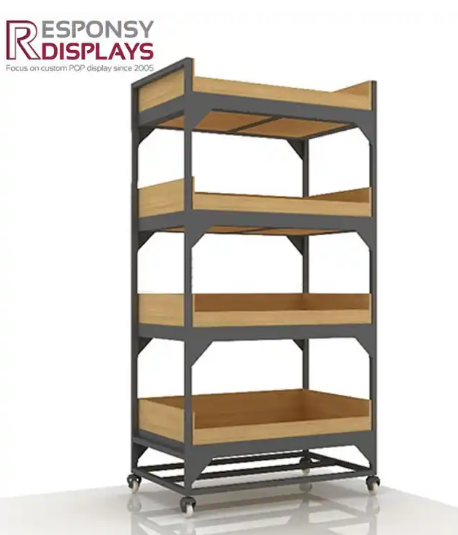 ชั้นแสดงสินค้าทำจากไม้และโลหะใช้แสดงสินค้าในซูเปอร์มาร์เก็ต