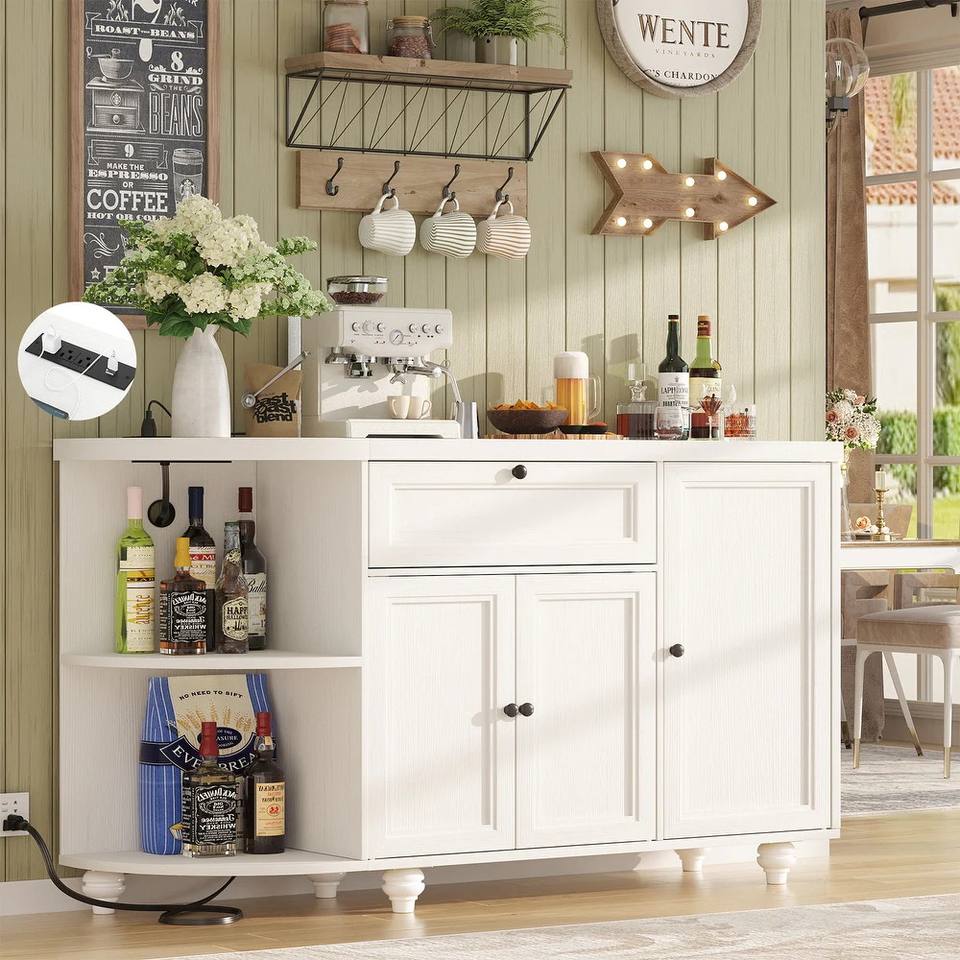 ตู้บุฟเฟ่ต์สไตล์บ้านไร่ฝรั่งเศสแบบกำหนดเอง พร้อมสถานีชาร์จ ชั้นวางปรับระดับได้ และชั้นวางไวน์ ตู้ข้างโต๊ะกาแฟ