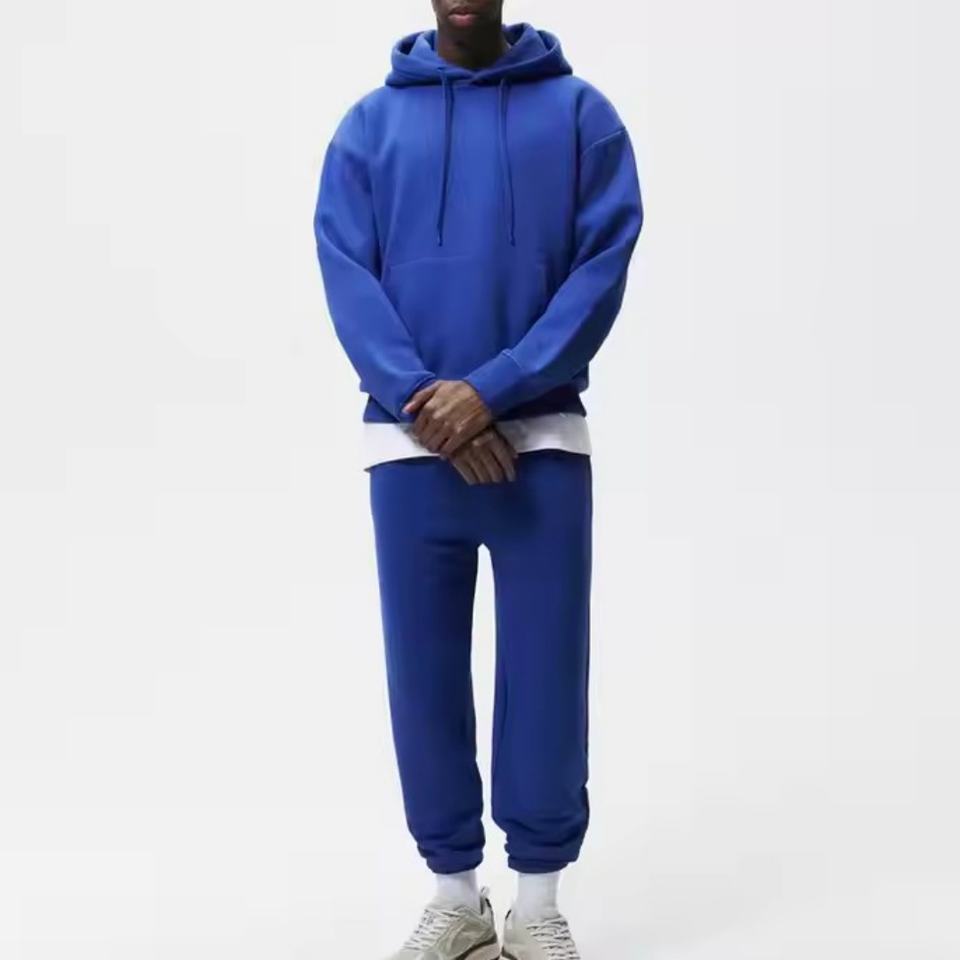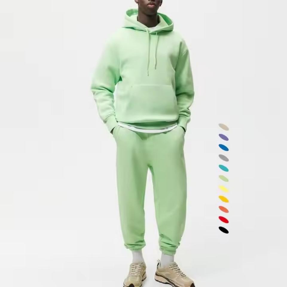 ชุดเซ็ตเสื้อฮู้ดดี้และกางเกงวอร์มผ้าเฟรนช์เทอร์รี่แบบกำหนดเองสำหรับผู้ชาย คุณภาพสูง แบบเรียบง่าย ชุดวอร์มลำลองสำหรับผู้ชาย