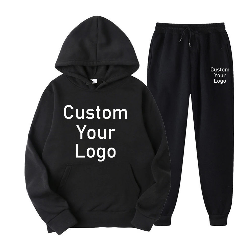 ชุดวอร์มผ้าเกล็ดปลาเทอร์รี่สำหรับผู้ชายชุดวอร์มกางเกงขาบานและเสื้อฮู้ดสำหรับผู้ชาย