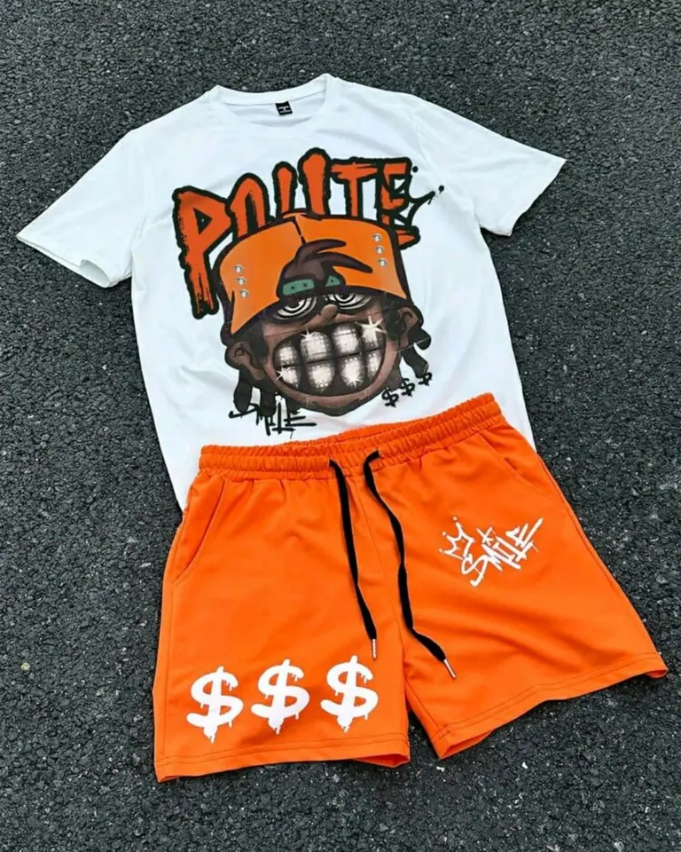 ชุดวอร์มผ้าฝ้าย2ชิ้นสำหรับผู้ชายชุดเสื้อยืดและกางเกงขาสั้นสไตล์สตรีทแวร์ล้างด้วยกรดออกแบบโลโก้ด้านหน้าได้ตามต้องการ