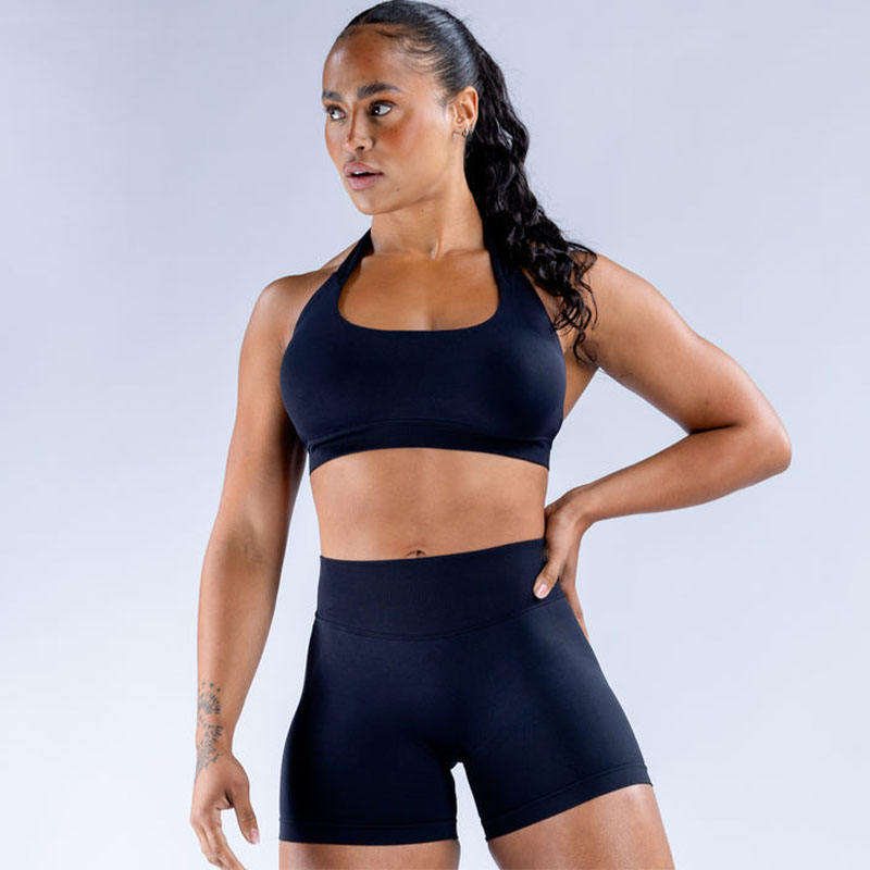ชุดโยคะ2ชิ้นคอวีแขนยาวระบายอากาศได้ดีเลกกิ้งผ้ายืดสูงแห้งเร็วโลโก้ด้านหน้าตามสั่ง