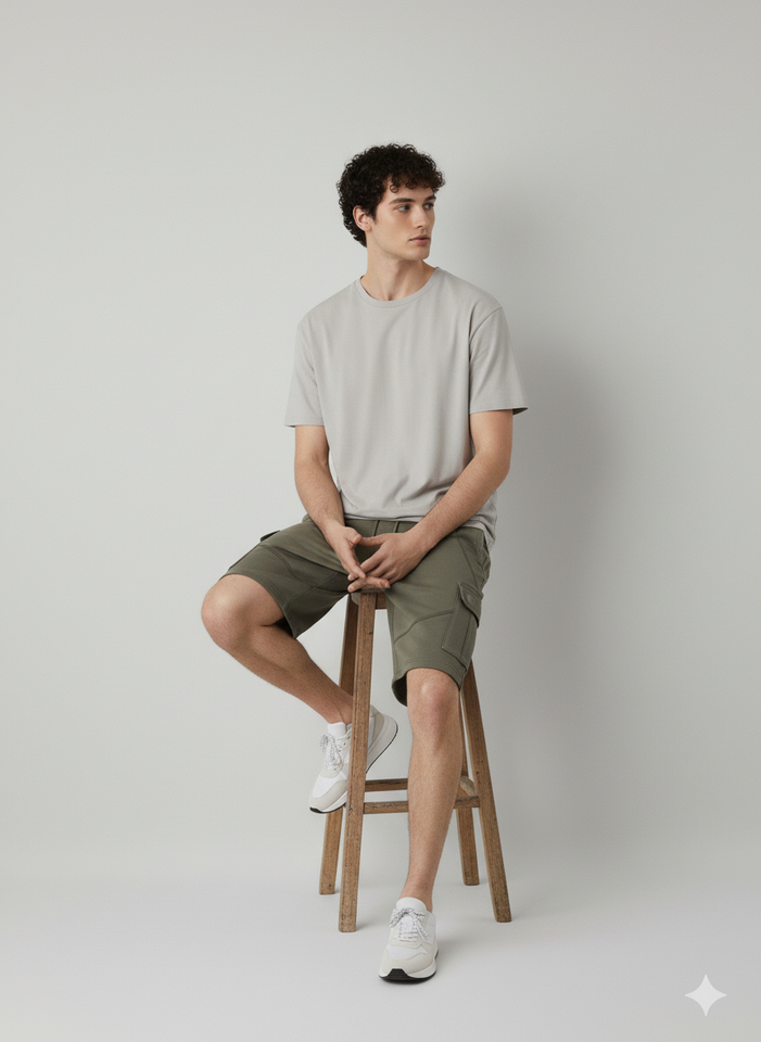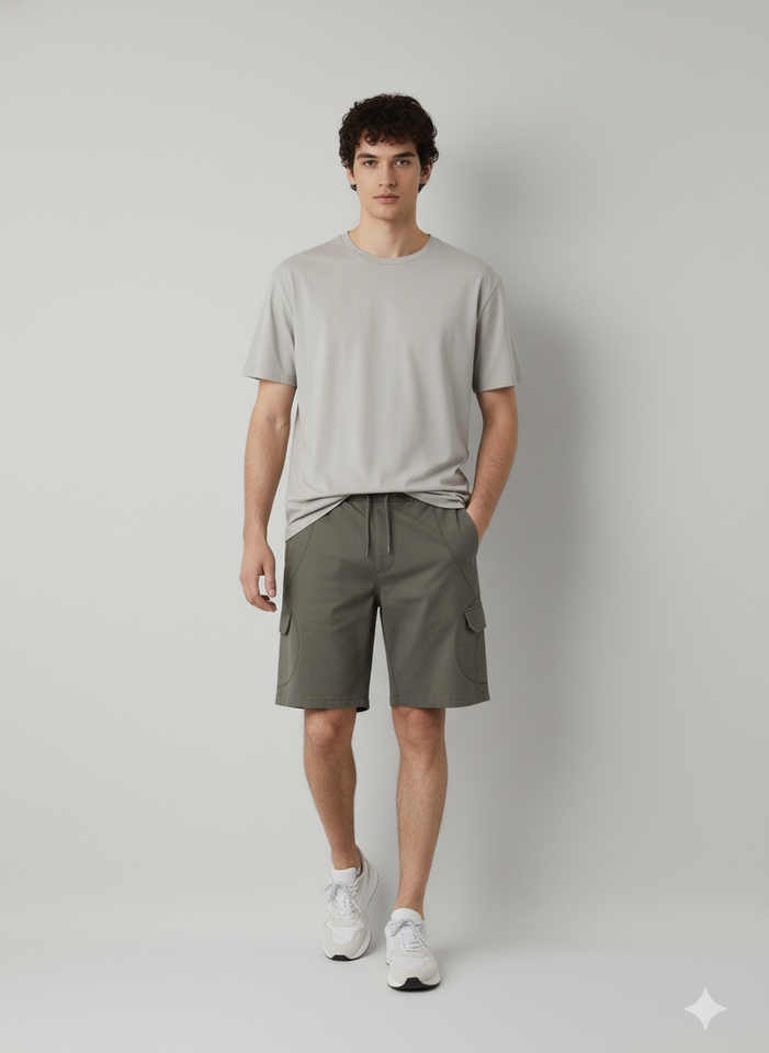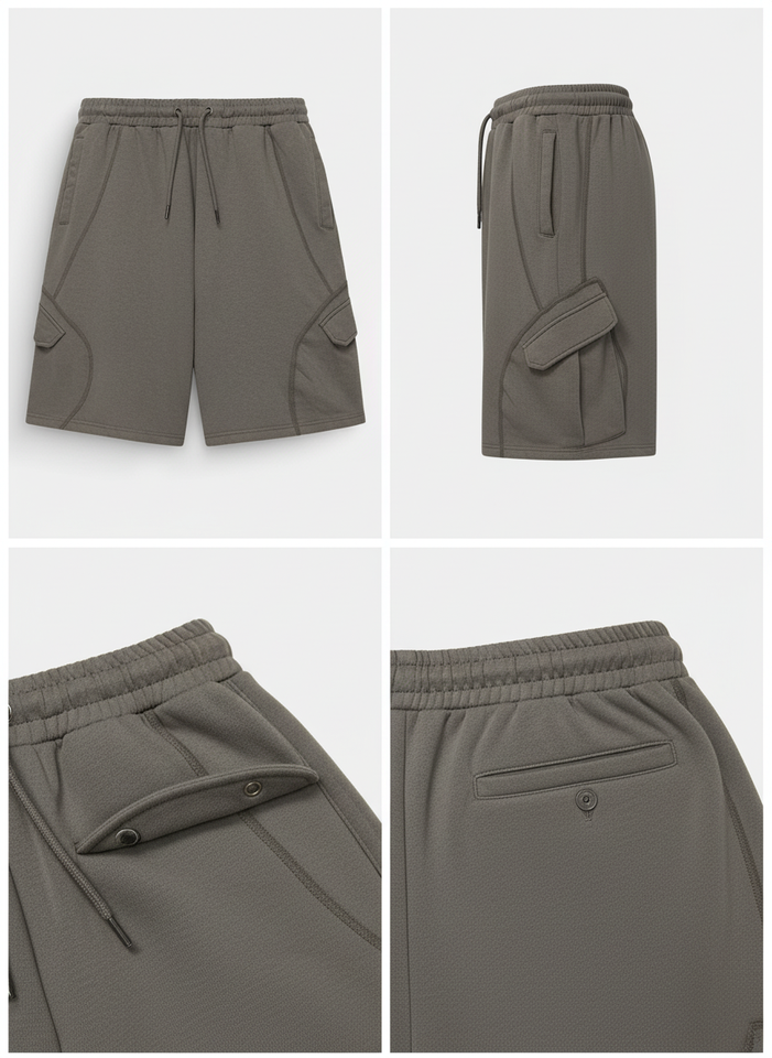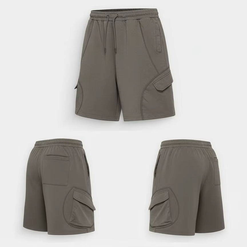 กางเกงขาสั้นเบอร์มิวด้าผู้ชายแบบลำลองเอวกลาง พิมพ์ลายด้วยความร้อน น้ำหนัก 160 กรัม มีหลายกระเป๋า เป็นมิตรกับสิ่งแวดล้อม กันยับ ติดกระดุม