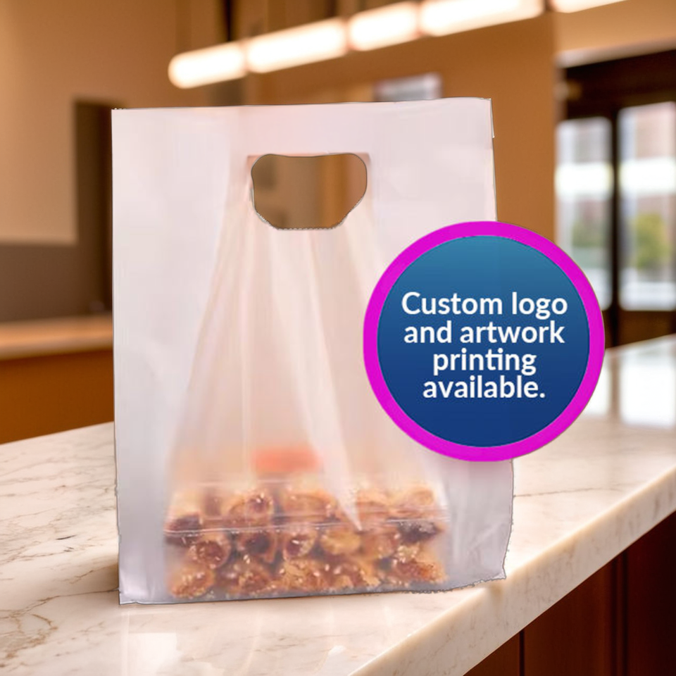 ถุงพลาสติกใสพร้อมที่จับและพิมพ์โลโก้สำหรับเค้กและขนมปัง