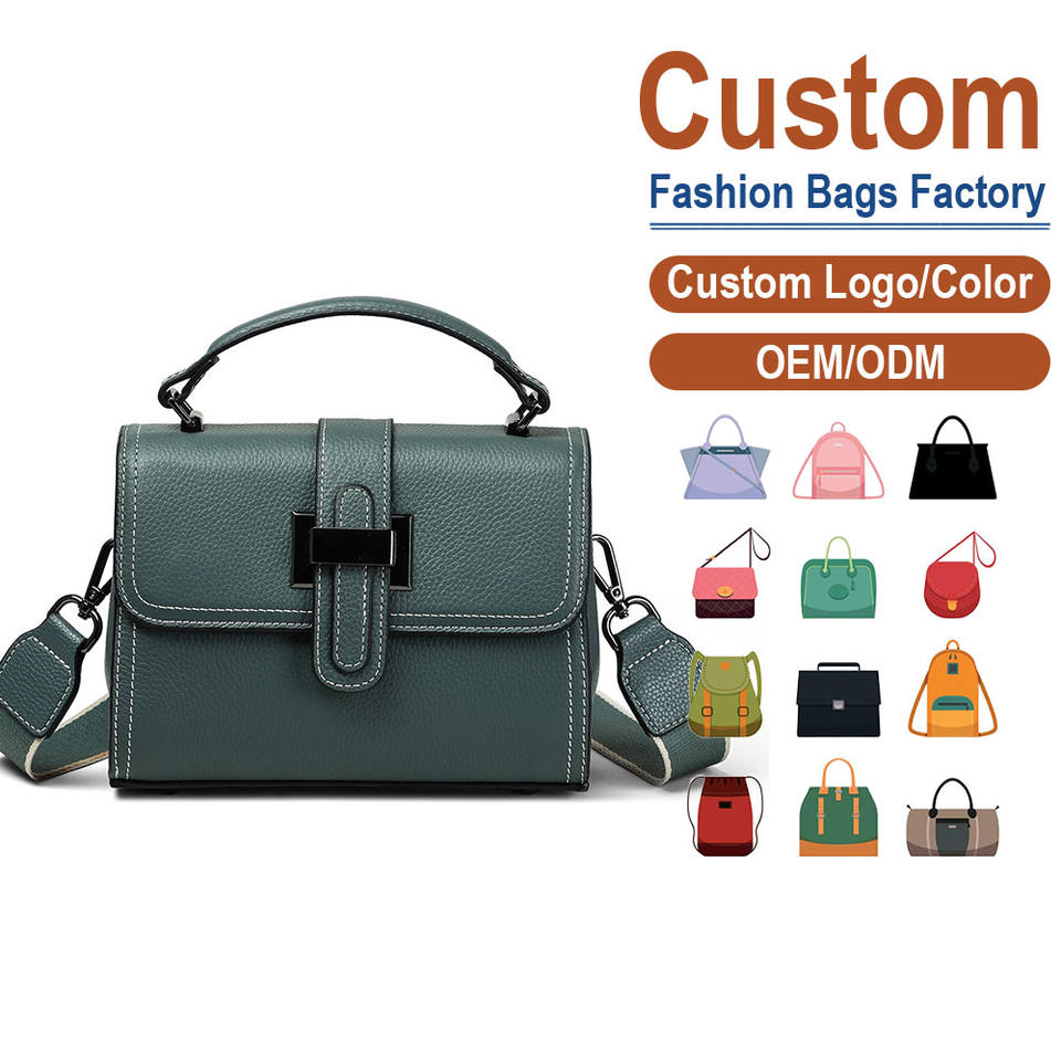 กระเป๋าสะพายข้างหนังแท้สำหรับผู้หญิง - สีเขียวฟอเรสต์ ลายหนังลิ้นจี่ พร้อมตัวล็อคแบบหัวเข็มขัดและรายละเอียดกระดุม | ทนทาน ความจุขนาดใหญ่