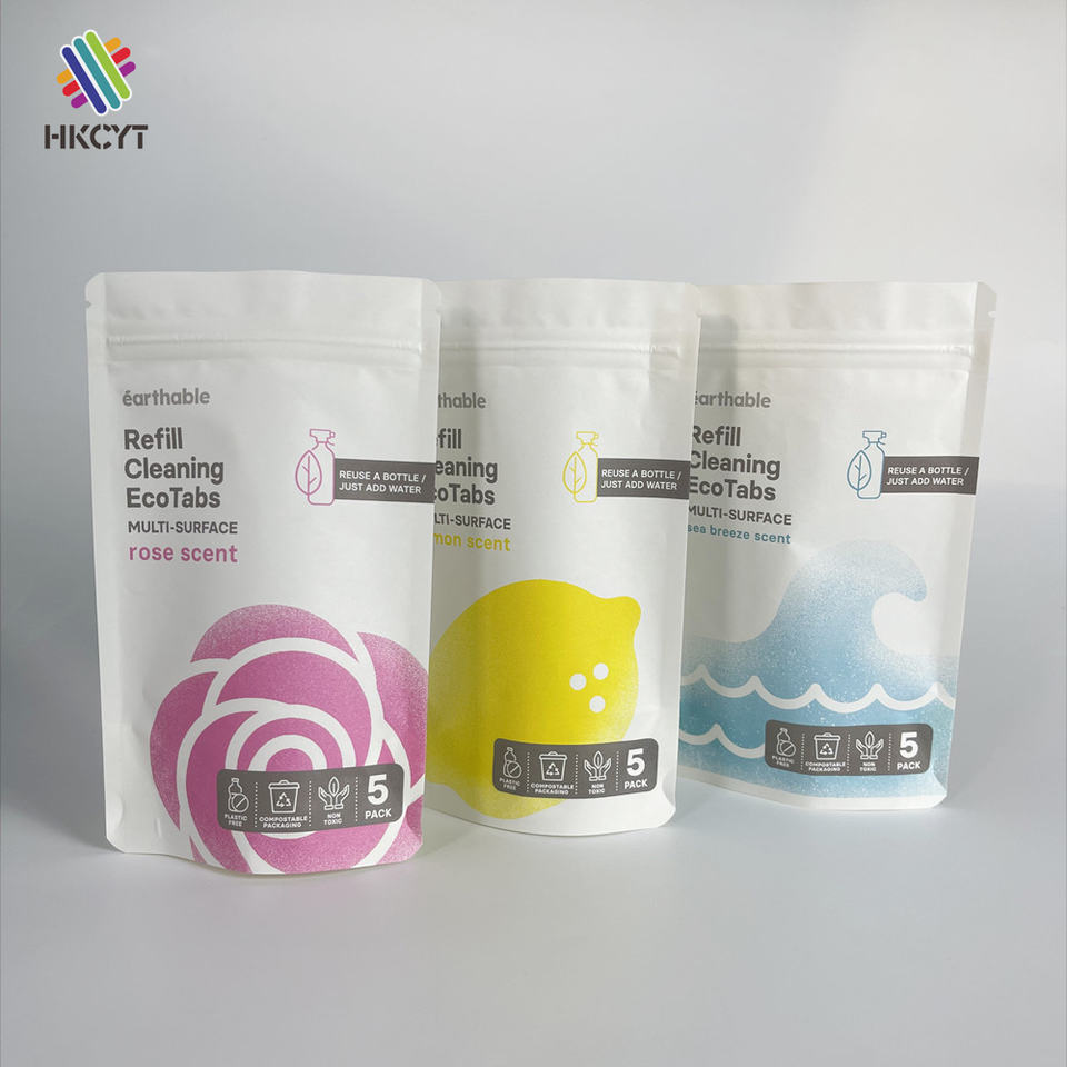 กระดาษที่ย่อยสลายได้พิมพ์แบบเต็มรูปแบบที่กำหนดเองยืนขึ้น Ziplock อลูมิเนียมฟอยล์บรรจุซิปเรียงรายถุงย่อยสลายได้
