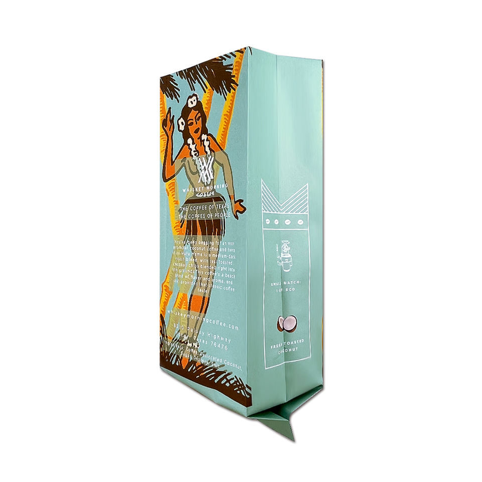 ผงมะพร้าวบรรจุกาแฟชามะพร้าวแบบมีโครงด้านข้างของ Mylar กำหนดได้เอง