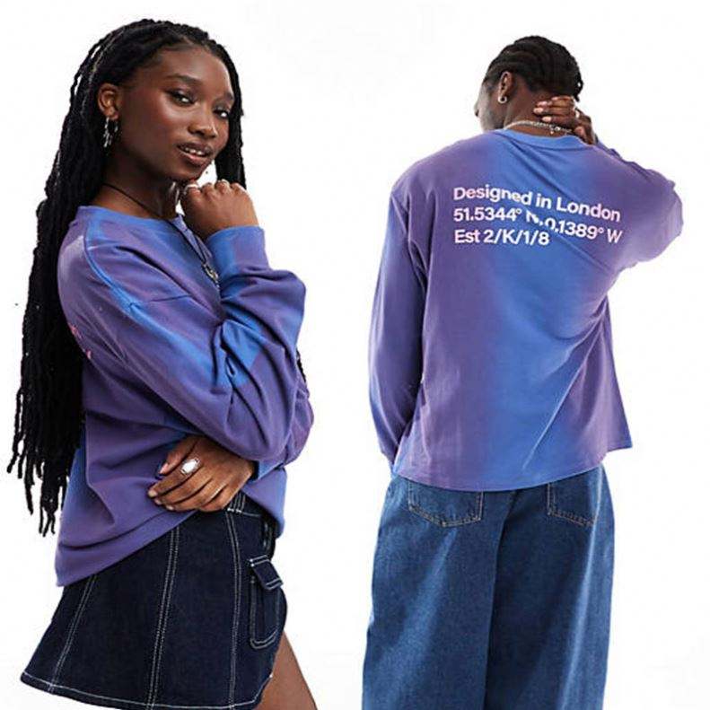 เสื้อยืดแขนยาวสำหรับผู้ชายทรงหลวมสำหรับทุกเพศ