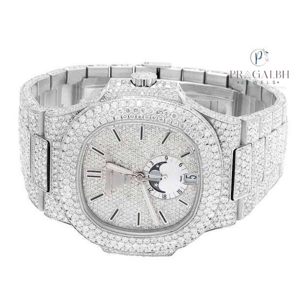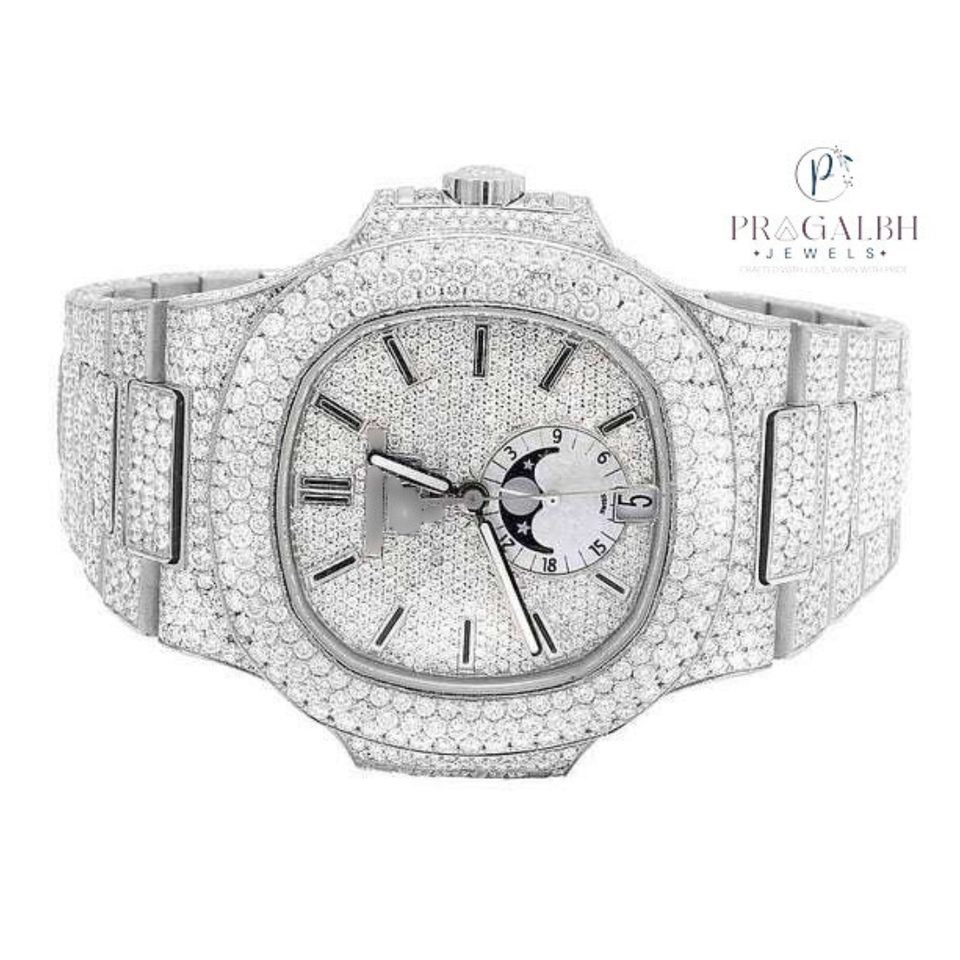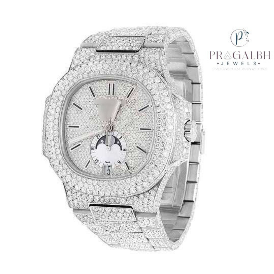 นาฬิกาเพชรมอิสซาไนต์สำหรับผู้ชายหรูหรางานตามสั่งทรงสี่เหลี่ยมขนาดใหญ่ทำจากสเตนเลสสตีลประดับเพชรมีการเคลื่อนไหวแบบควอทซ์