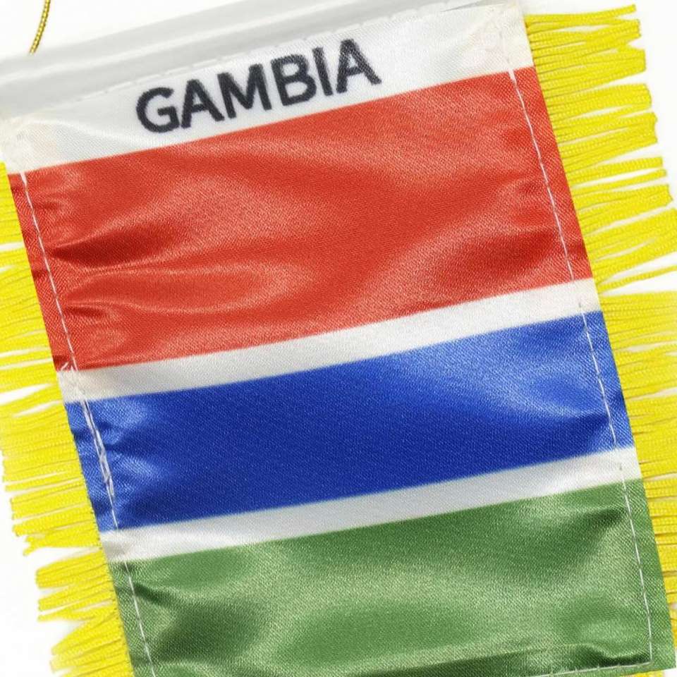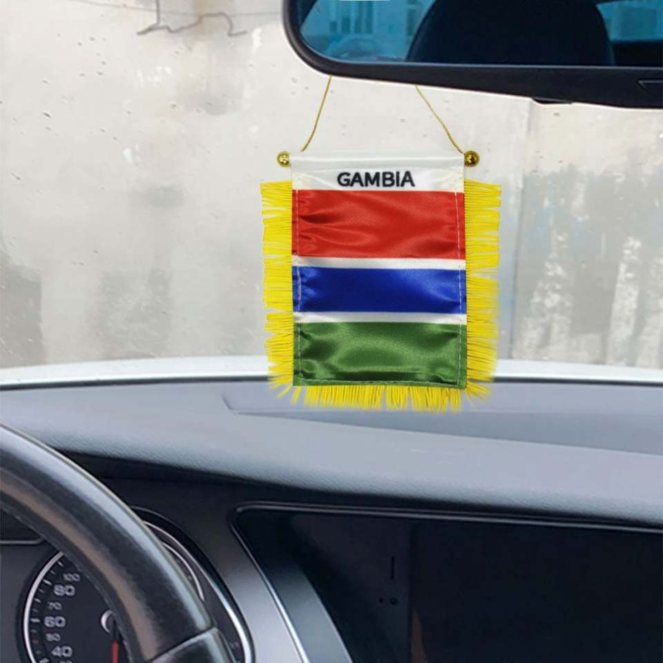 ธงซาตินกัมเบียแบบกำหนดเอง ธงติดรถยนต์ขนาดเล็ก พร้อมพู่สีเหลือง