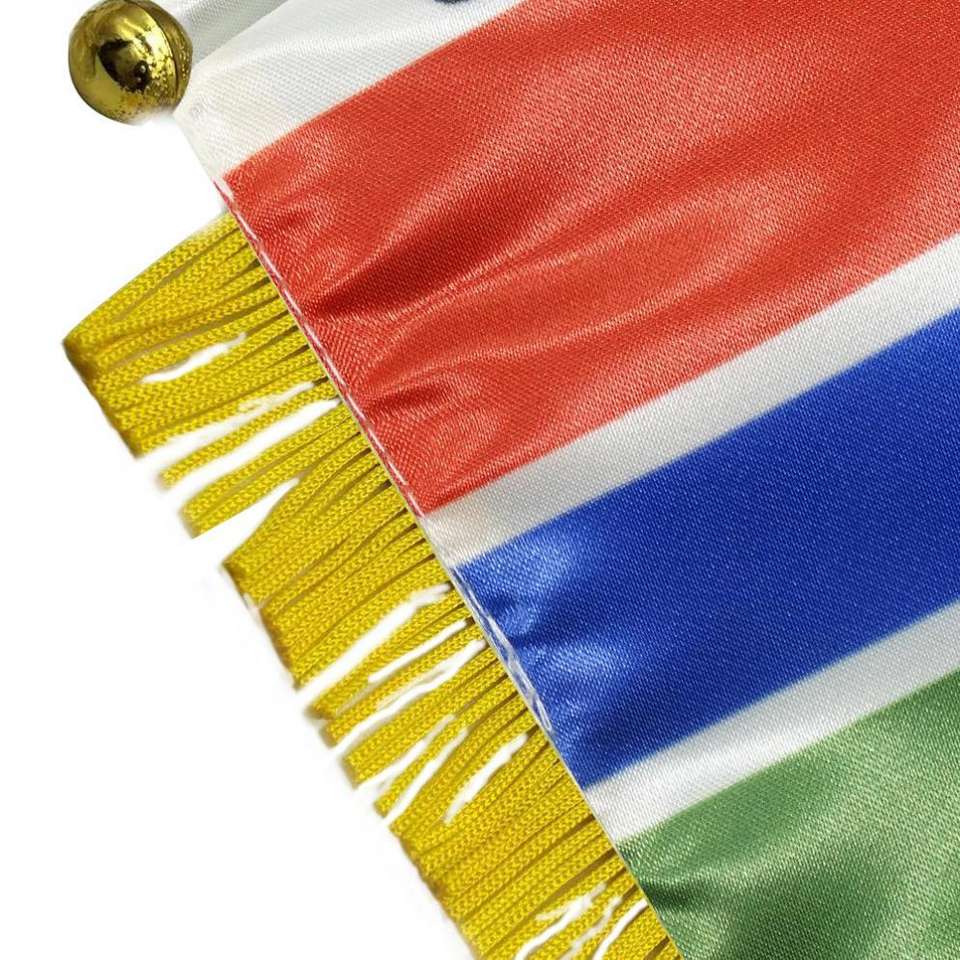 ธงซาตินกัมเบียแบบกำหนดเอง ธงติดรถยนต์ขนาดเล็ก พร้อมพู่สีเหลือง