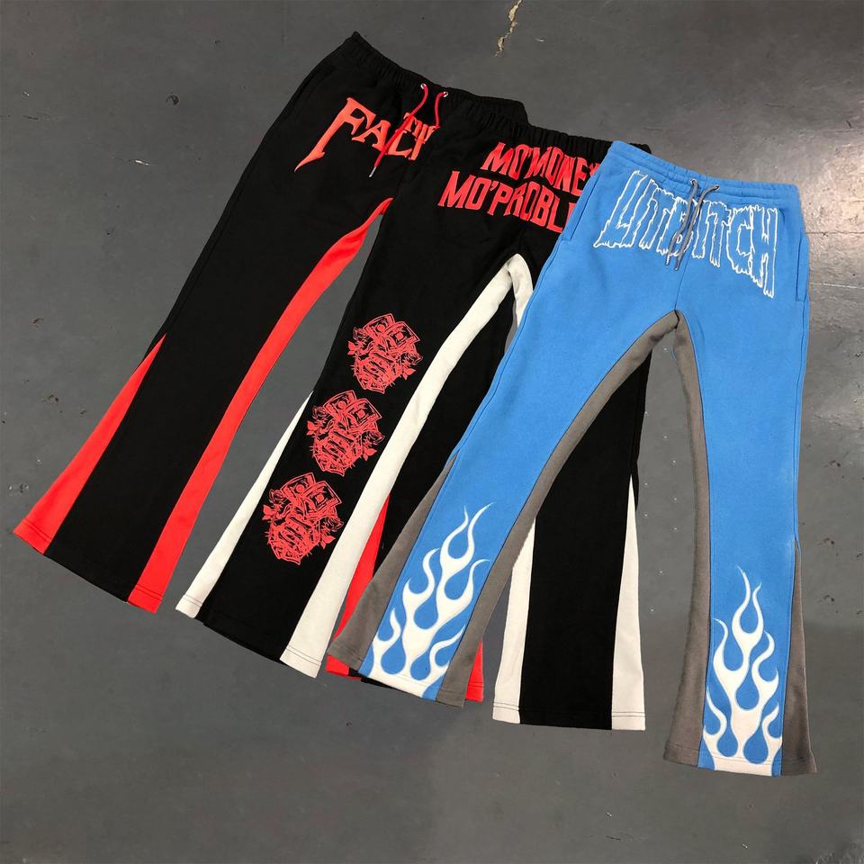 กางเกงวอร์มทรงขาบานสไตล์วินเทจสำหรับผู้ชาย ผ้าฝ้าย 100% ระบายอากาศ กันน้ำ ทรงหลวม ขาบานแบบซ้อน รุ่น Custom Gallery รับผลิตแบบ OEM