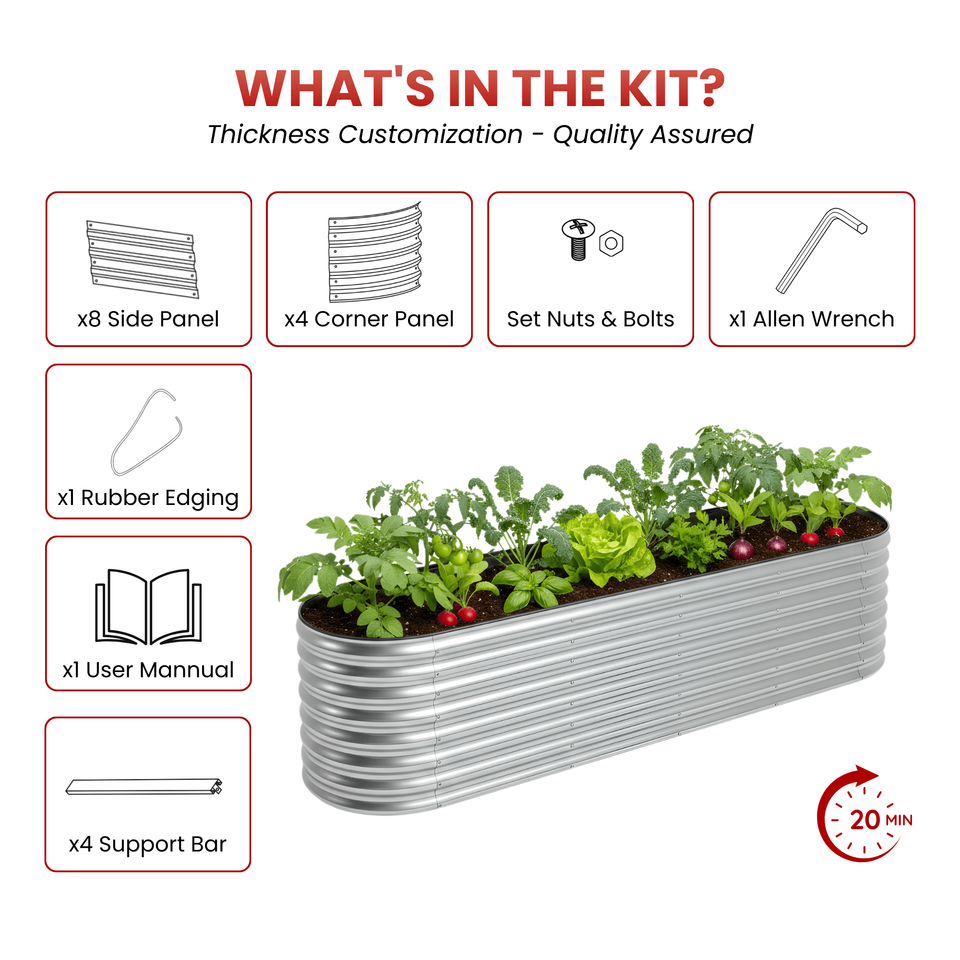 แปลงปลูกผักยกพื้นแบบชุบสังกะสีสำหรับใช้งานกลางแจ้ง ดีไซน์ยาวพิเศษ สำหรับปลูกผัก ขายส่ง รุ่น GB027