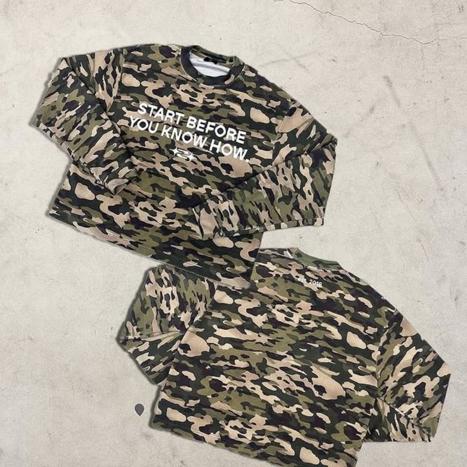 เสื้อยืดแขนยาวลายพรางทหารแบบกำหนดเอง ผ้าถักลายวาฟเฟิล เนื้อผ้าอุ่น สำหรับผู้ชาย สไตล์ดิสเทรส