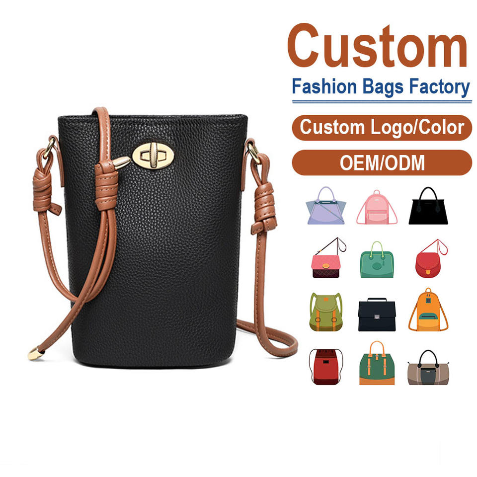 กระเป๋าหนังแท้แบบสะพายข้าง – กระเป๋าใส่โทรศัพท์สีดำลายลิ้นจี่พร้อมสายสะพายไหล่สีคาราเมลและหัวเข็มขัดโลหะรูปวงรี