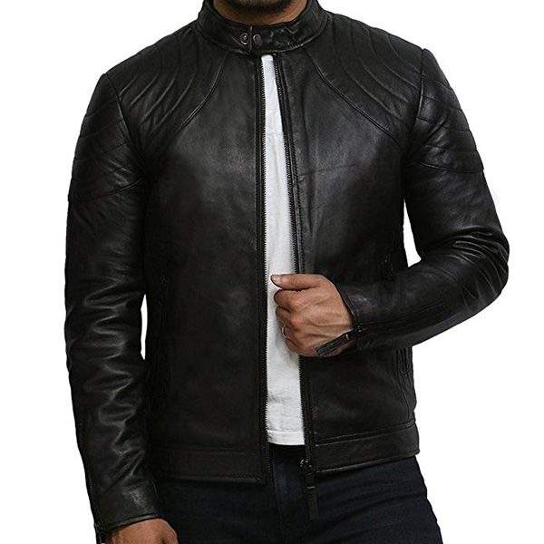 ที่กำหนดเองหนังแกะหนังแท้หนังสีดำแจ็คเก็ตสำหรับผู้ชาย
