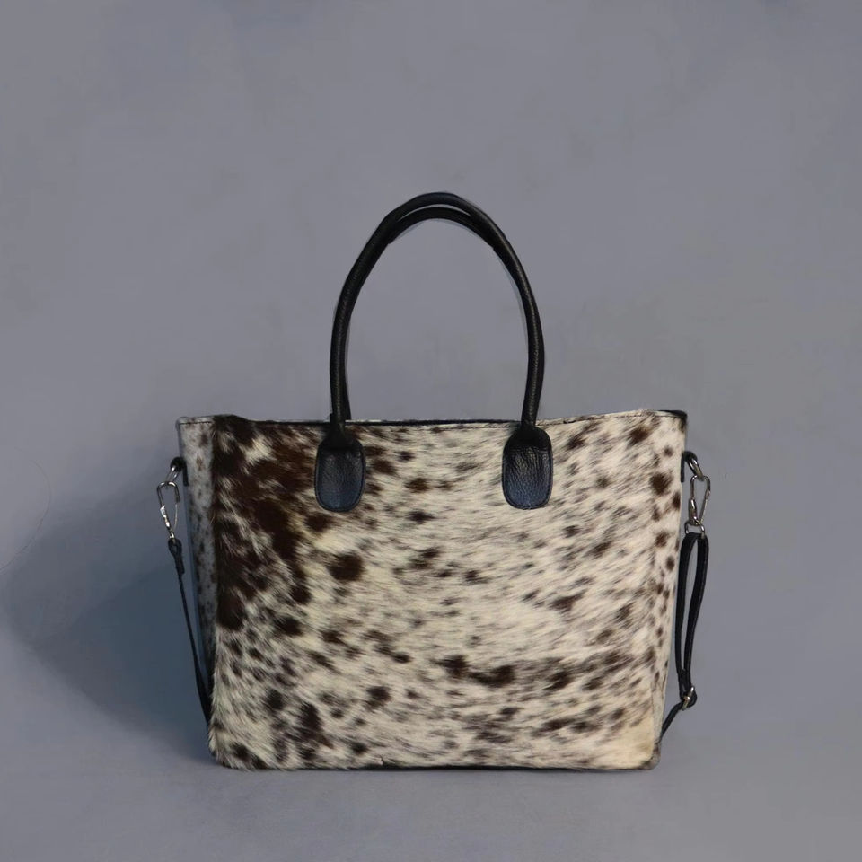 กระเป๋าโท้ทหนังแท้ลายขนสัตว์พร้อมซิปและงานปัก กระเป๋าสะพายไหล่ดีไซน์เนอร์สำหรับผู้หญิง รุ่น LHTB-0033B