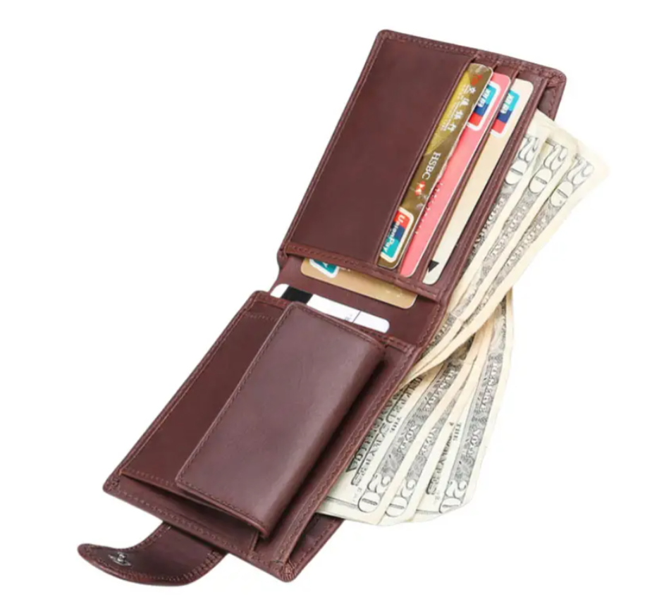 กระเป๋าสตางค์หนังแท้บุรุษ ป้องกัน RFID ขนาดเล็ก น้ำหนักเบา คุณภาพสูง ดีไซน์บางเฉียบ พร้อมช่องใส่บัตรและช่องใส่เหรียญ
