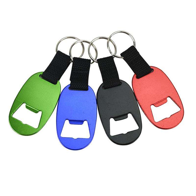 พวงกุญแจที่เปิดขวดทำจากโลหะพวงกุญแจแบบกำหนดเองพวงกุญแจสายคล้องเอวที่เปิดขวดเบียร์รูปวงรีอลูมิเนียมพวงกุญแจที่เปิดขวดไวน์