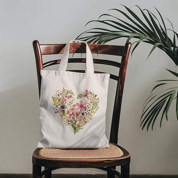 กระเป๋าผ้าแคนวาสทรงหัวใจลายดอกไม้สวยงามสำหรับผู้หญิง ใช้ซ้ำได้ ของขวัญวันวาเลนไทน์แบบกำหนดเอง
