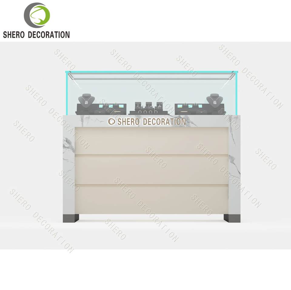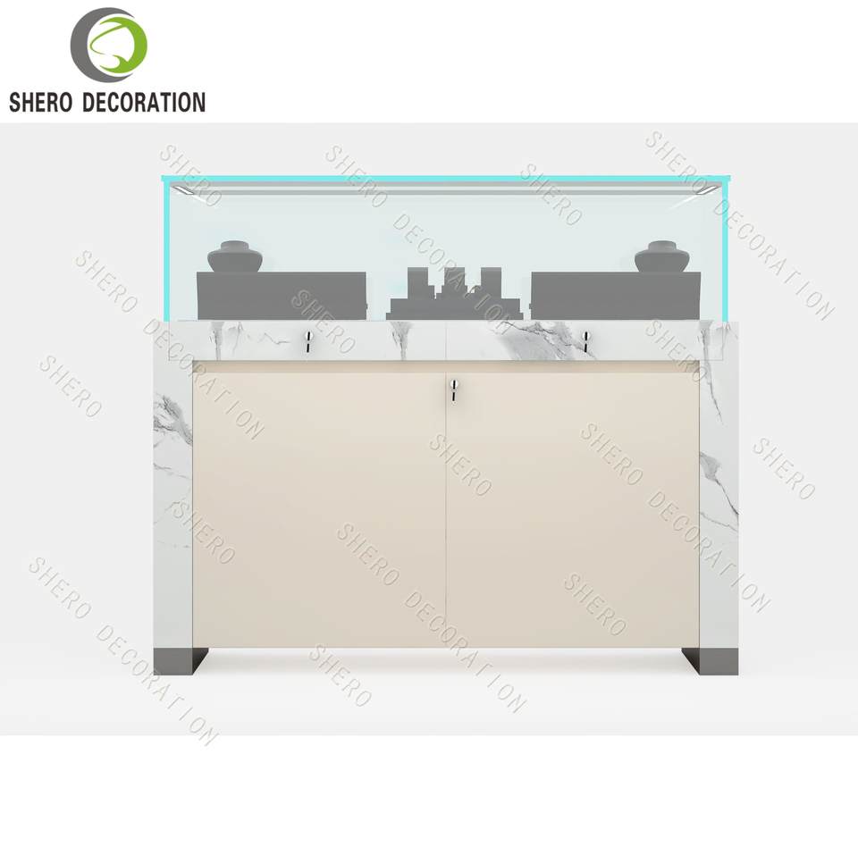 ออกแบบเคาน์เตอร์ร้านขายเครื่องประดับกระจกแบบกำหนดเอง ตู้โชว์เครื่องประดับพร้อมไฟ