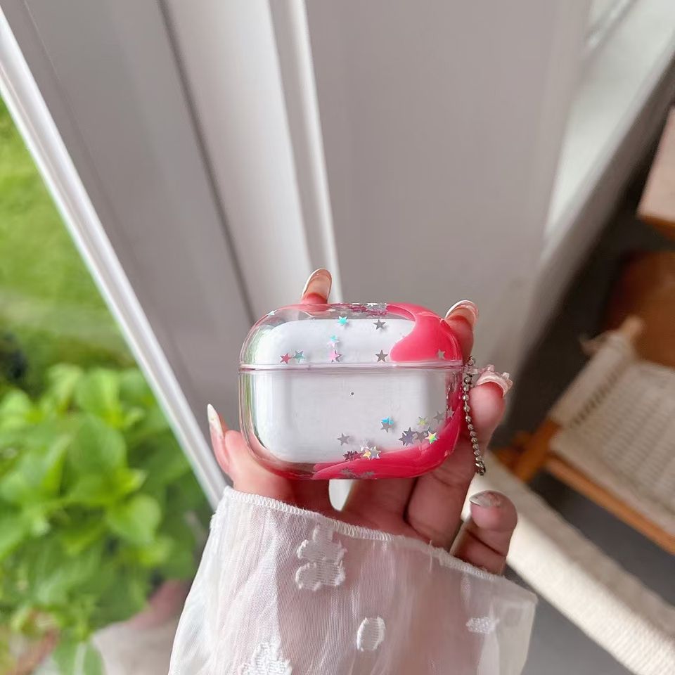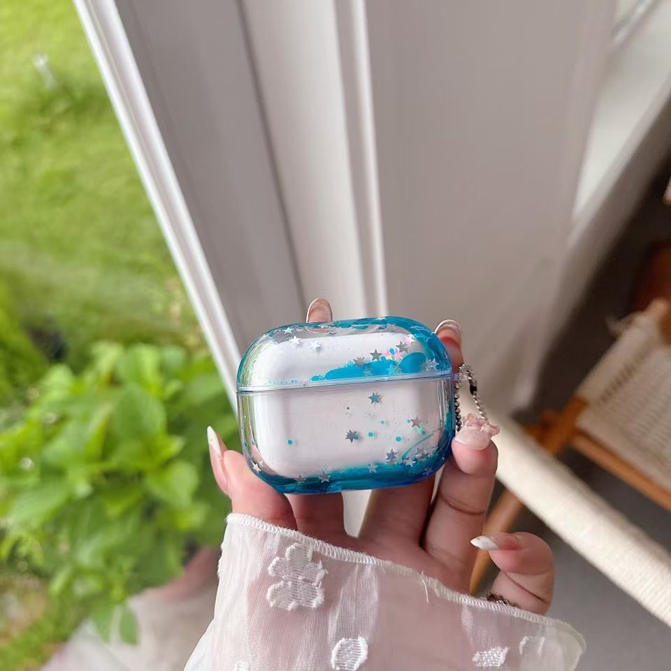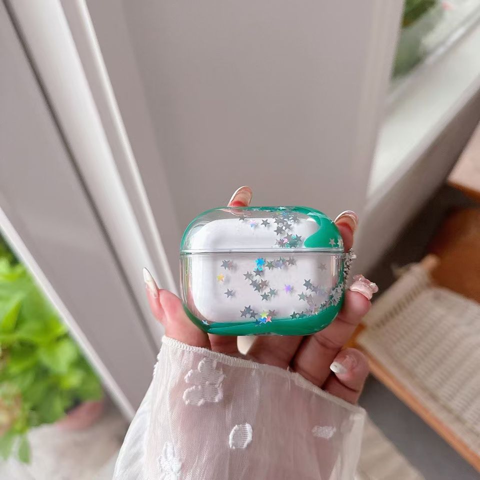 เคสกรอบแข็ง PC กลิตเตอร์ออกแบบได้ตามต้องการสำหรับ airpods 1/2/3/4 Pro ปกป้องหูฟังด้วยดาวลอยน้ำคู่กันกระแทก