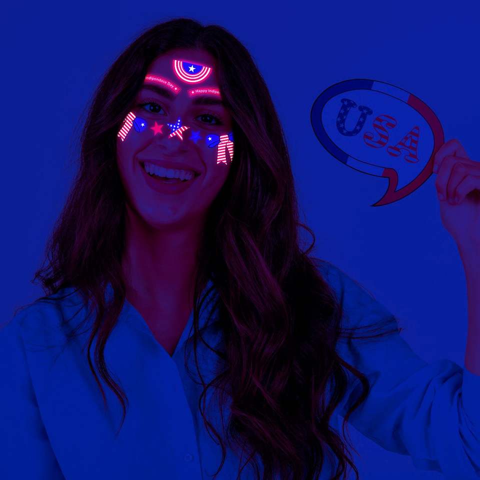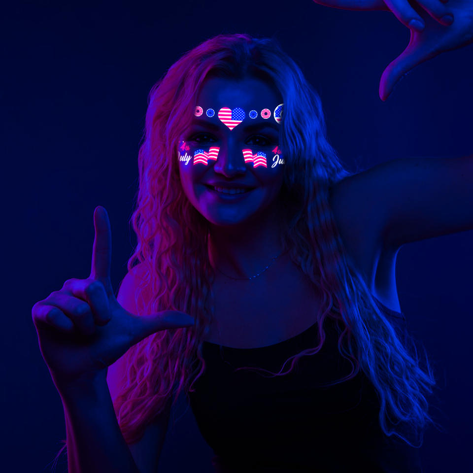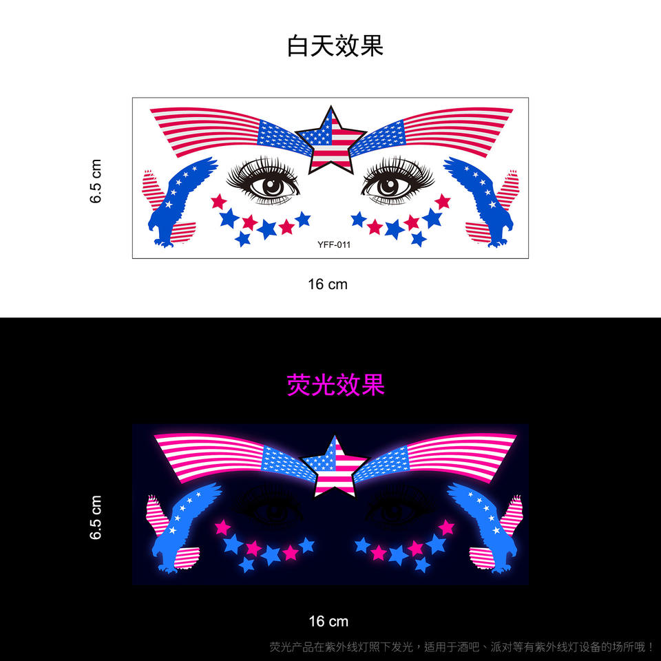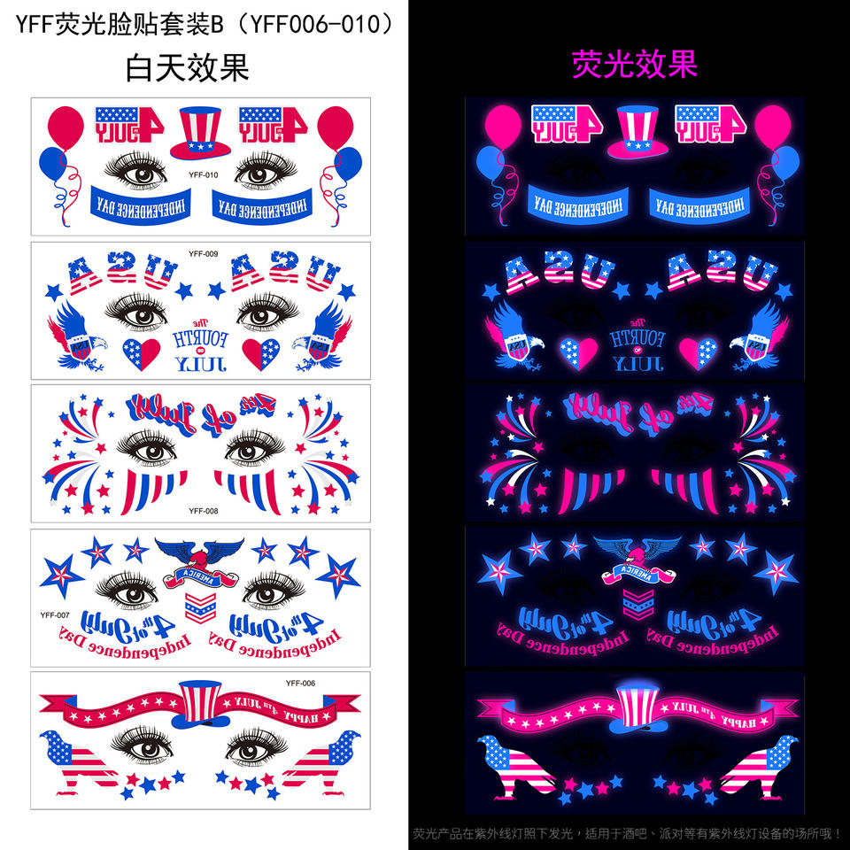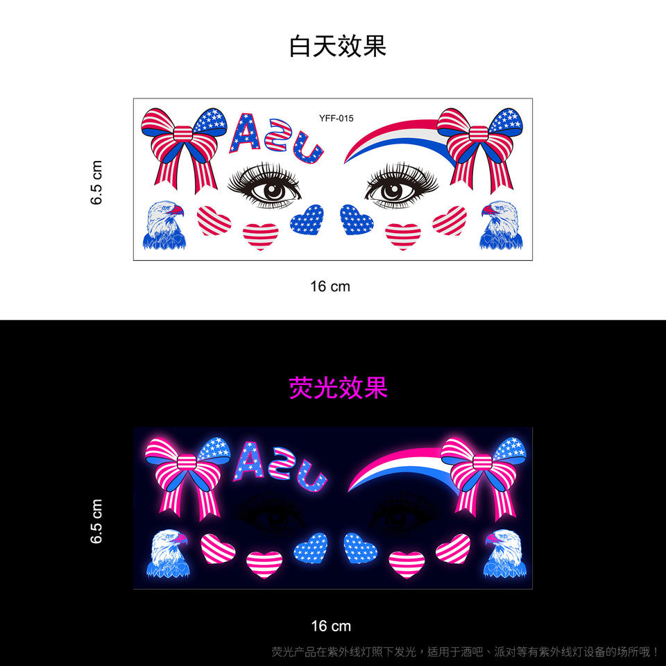 สติกเกอร์สักลายเรืองแสงในที่มืดแบบกำหนดเอง สติกเกอร์กันน้ำสำหรับติดหน้าและตัวแบบเรืองแสงยูวีนีออน สติกเกอร์สักลายชั่วคราวเรืองแสงในที่มืด