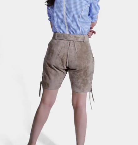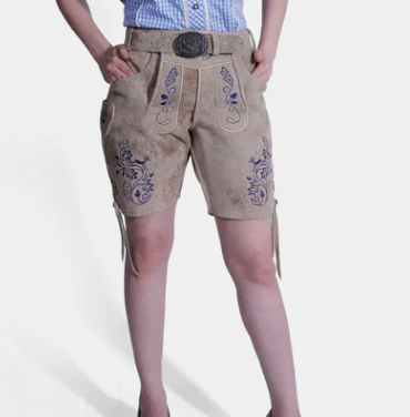 กางเกงขาสั้นสไตล์บาวาเรียหนังกลับแพะปักลายสำหรับผู้หญิง