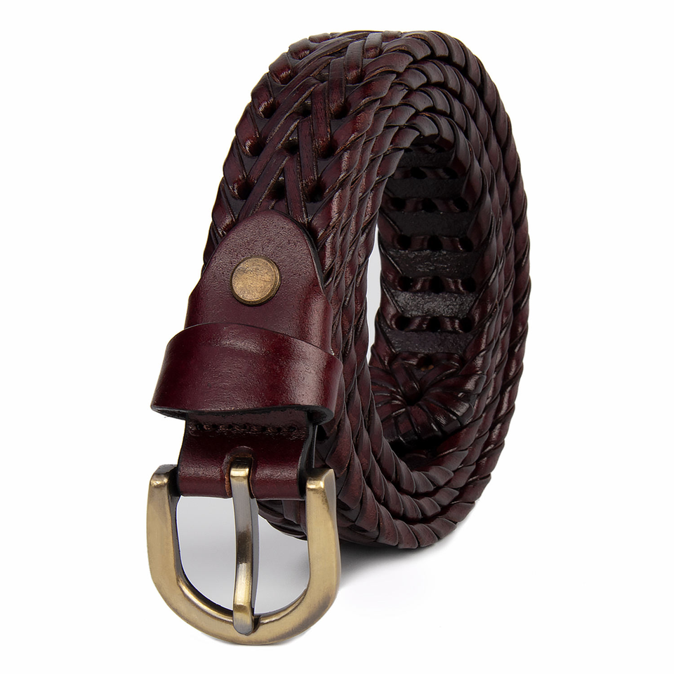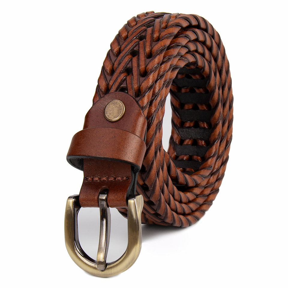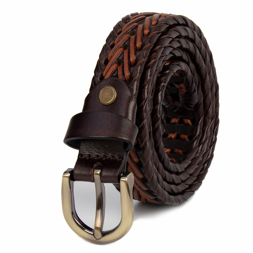 เข็มขัดหนังแท้ถักแบบถักทอสีดำน้ำตาลหรูหราหัวเข็มขัดทองแบบกำหนดเองสำหรับผู้ชาย