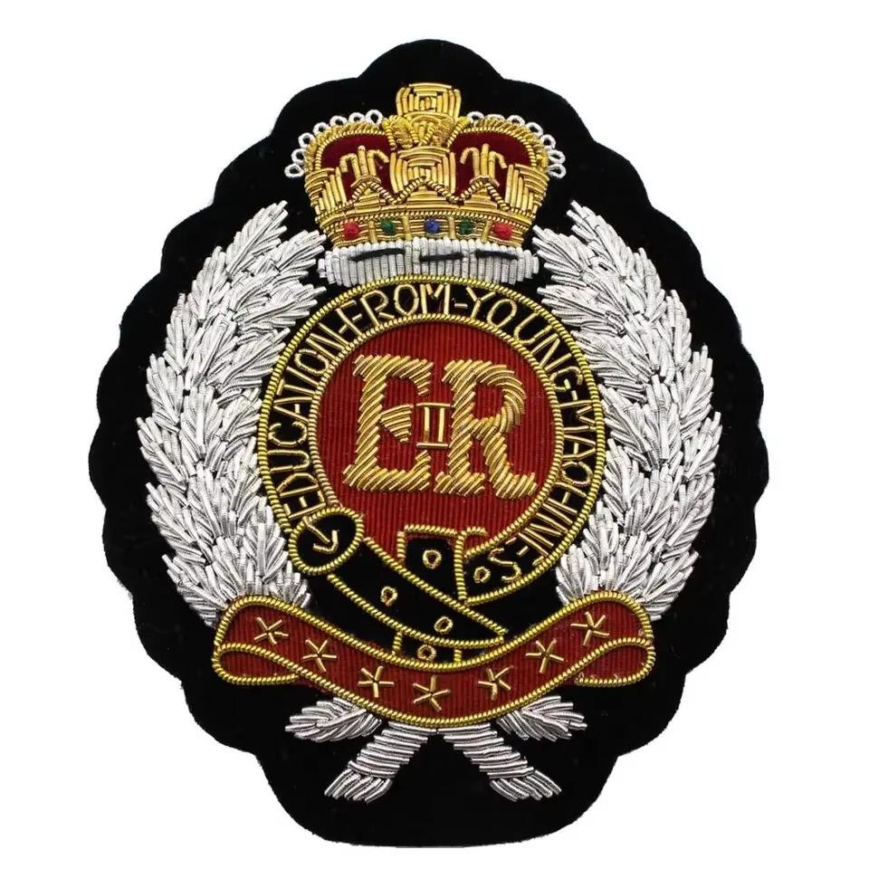 ตราสัญลักษณ์ตัวอักษรแบบปักด้วยมือบนผ้าทวิลล์ลายเส้นทองคำแท่ง สำหรับเสื้อแจ็คเก็ตและเครื่องแบบ