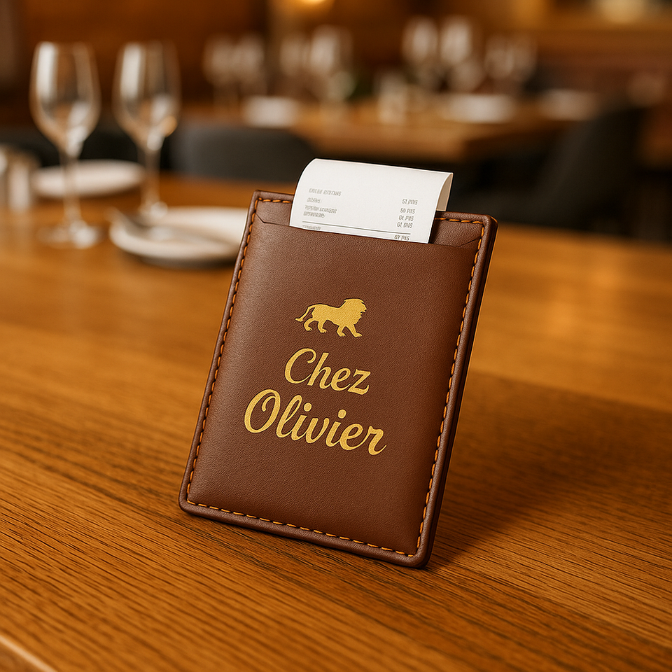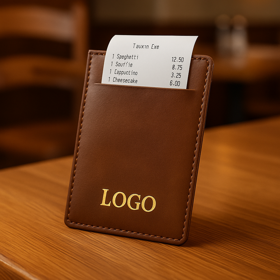 สมุดจดใบเสร็จสำหรับร้านอาหารโรงแรมแบบพกพาซองหนังหรูหราพิมพ์โลโก้ด้วยฟอยล์สีทองแบบกำหนดเอง