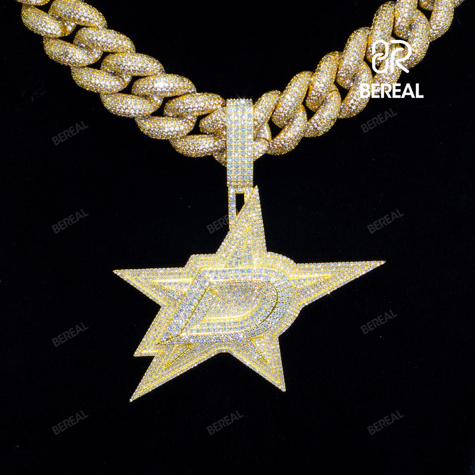 จี้รูปดาว VVS Moissanite ชุบทองตามสั่งจี้เพชรแบบเม็ดกลมสำหรับผู้ทดสอบเพชรโมอิส925จี้เงิน
