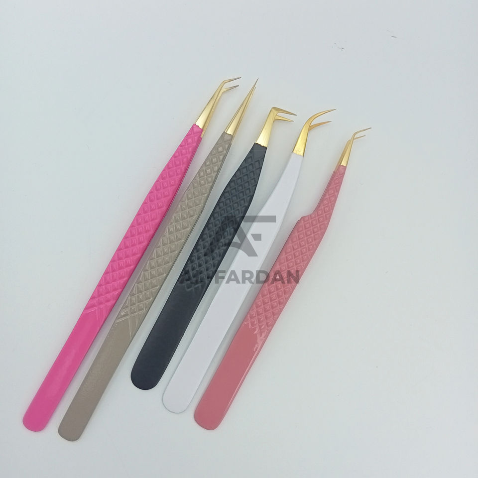 แหนบต่อขนตาปลอมทำจากสเตนเลสทนทานปลายนาโนทำจากเส้นใยเคลือบสีทองแบบกำหนดได้เอง